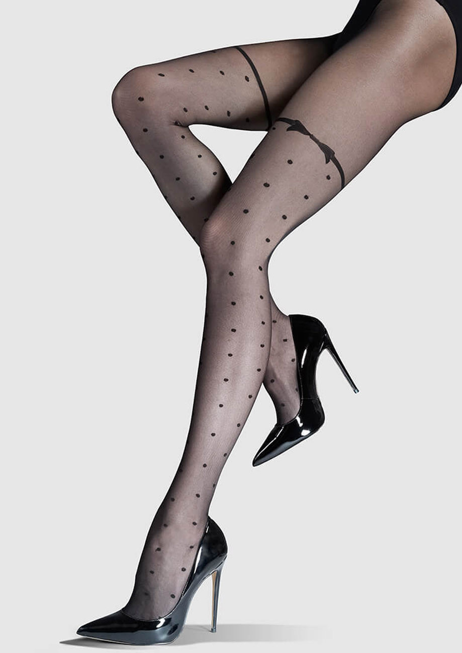 dámske elastické jemne vzorované pančuchové nohavice. Sú vyrobené zo špeciálnej opletanej priadze, ktorá zvyšuje trvácnosť a odolnosť výrobku voči zatiahnutiu. Použitie malého klinu a nezosilneného sedu zabezpečuje maximálne pohodlie a komfort pri ich nosení.