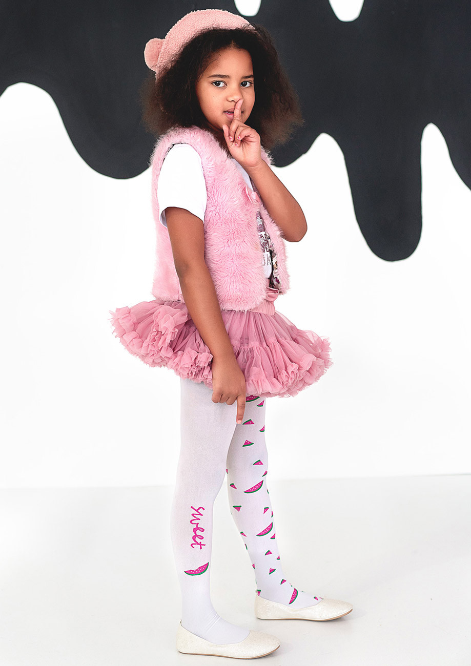 dievčenské pančuchové nohavice s potlačou vyrobené z mäkkého nepriehľadného mikrovlákna. Sú vyrábané bez zosilneného sedu, s malým klinom, 40den.