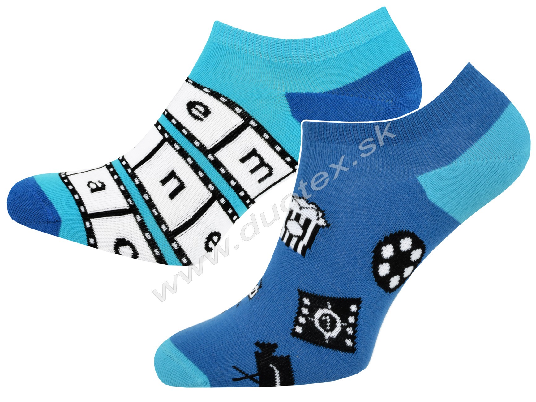 Pánske extravagantné členkové ponožky s výrazným farebným vzorom, pričom jeden pár ponožiek tvoria dva navzájom zladené vzory. S týmito ponožkami nesplyniete s davom - buďte originálni!