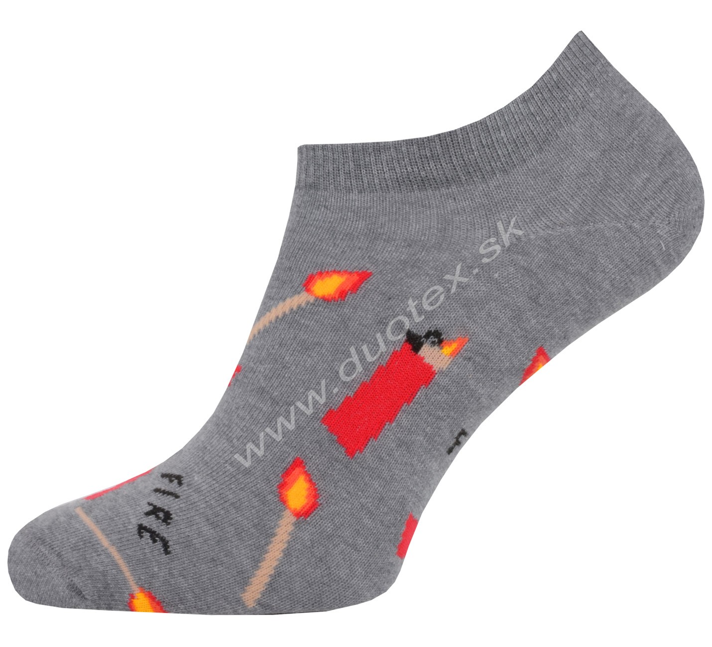pánske elastické členkové ponožky s výrazným vzorom, päta konštruovaná do tvaru Y obmedzuje zosúvanie ponožky, pohodlný prevesovaný lem