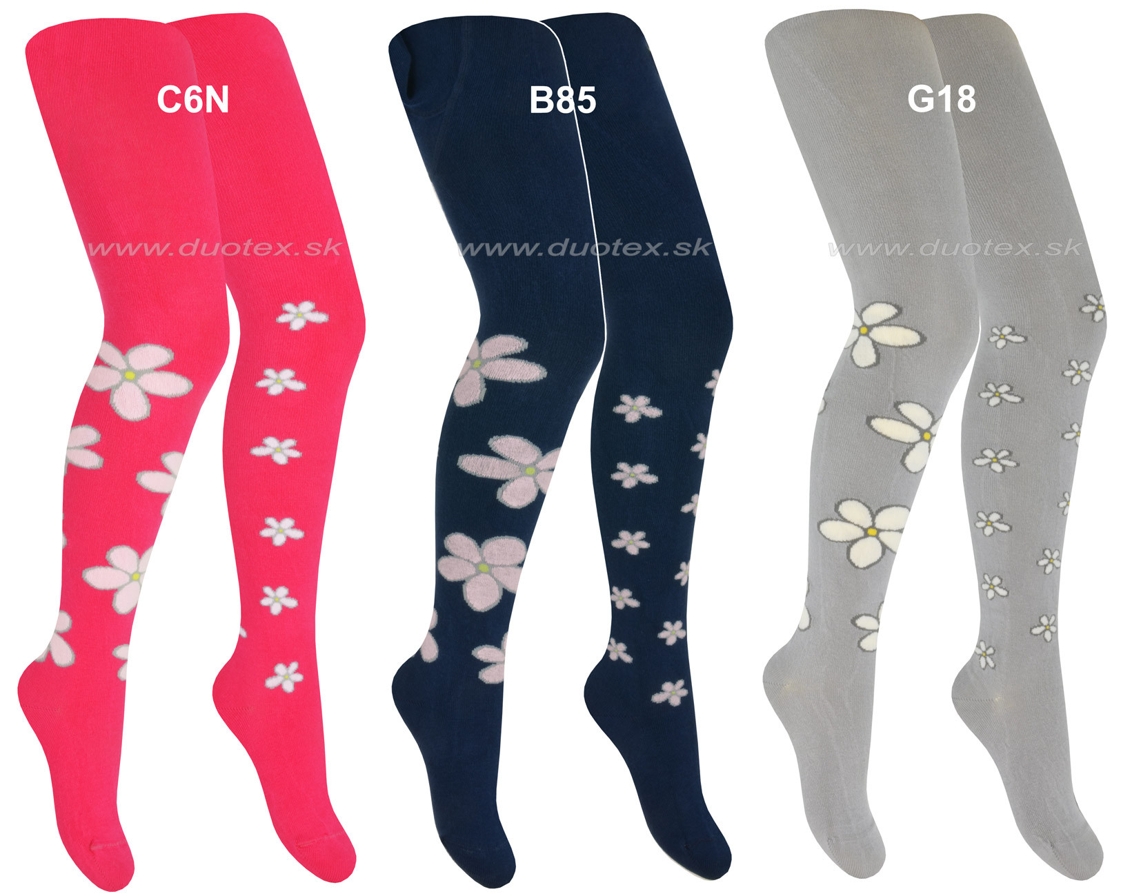 detské hladké vzorované elastické bavlnené pančuchové nohavice s rozdielnym prevedením vzoru na obidvoch nohách