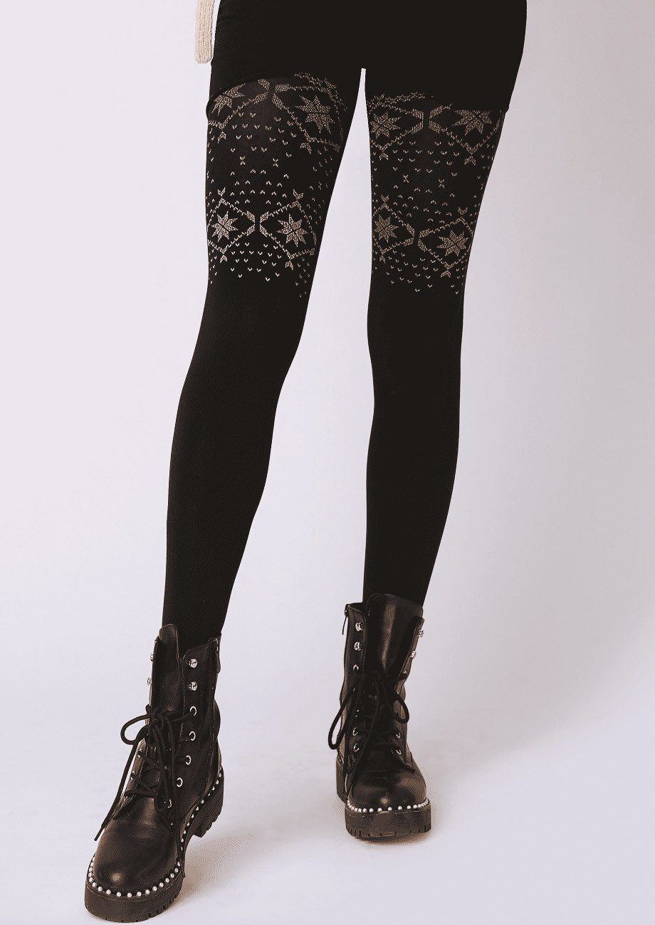 dámske nepriehľadné vzorované pančuchové nohavice vyrobené z mäkkého mikrovlákna. Použitá 3D technológia zabezpečuje trojrozmernú elasticitu výrobku. Použitie plochých švov a malého klinu v rozkroku zaisťuje maximálny komfort a pohodlie pri ich nosení.