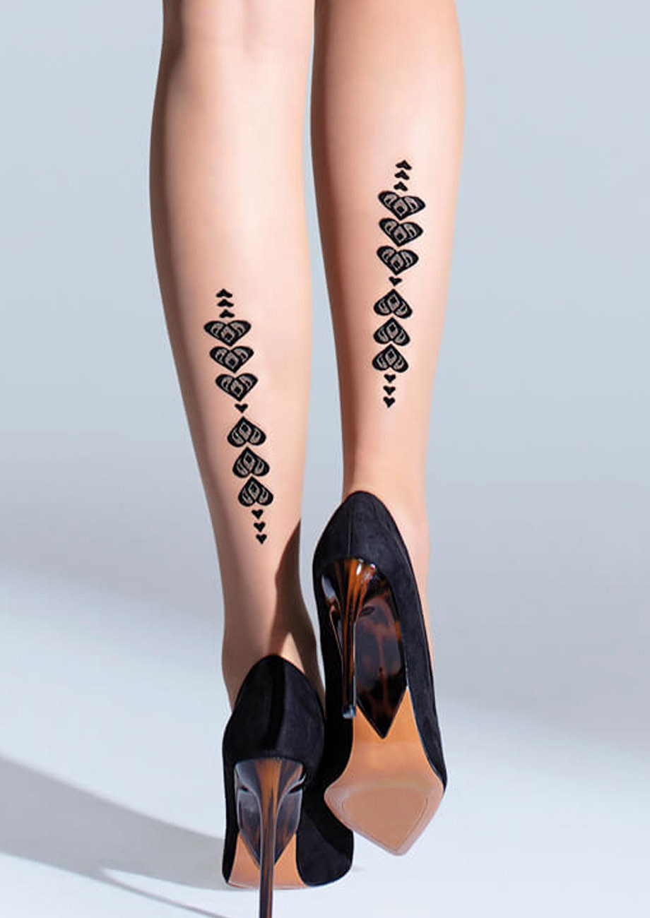 dámske elastické jemne vzorované pančuchové nohavice. Sú vyrobené zo špeciálnej opletanej priadze, ktorá zvyšuje trvácnosť a odolnosť výrobku voči zatiahnutiu. Použitie malého klinu, plochých švíkov a nezosilneného sedu zabezpečuje maximálne pohodlie a komfort pri ich nosení.