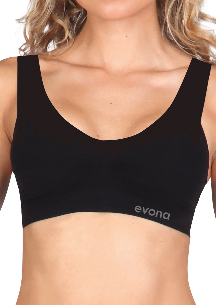 Dámska bezšvíková športová podprsenka v bezkosticovom prevedení so širokými ramienkami. Túto bezšvíkovú podprsenku si obľúbite na nenáročné športové aktivity alebo domáce nosenie.