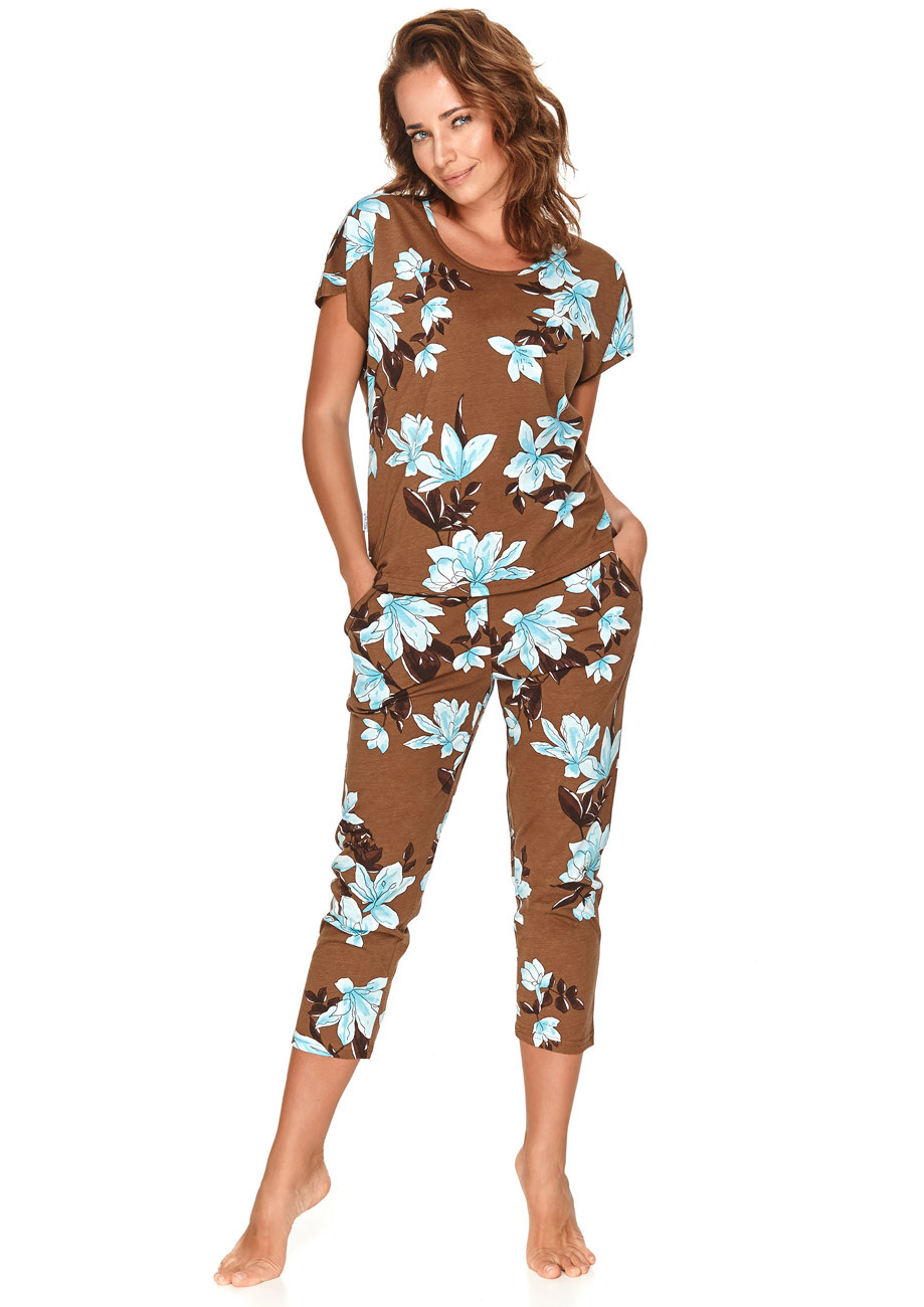 dámske pyžamo s krátkym rukávom a 7/8 nohavicami s bočnými vreckami vyrobené zo 100% bavlneného úpletu - široká navliekaná guma v páse nohavíc