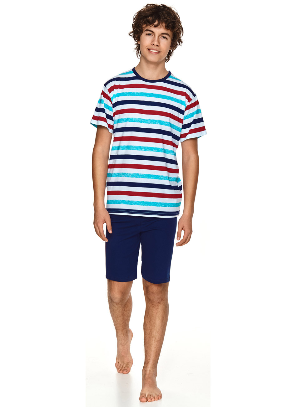 chlapčenské pyžamo s krátkym rukávom, krátke nohavice - všívaná guma v páse nohavíc. Pyžamo je vyrábané v sérii "otec a syn" (pánske pyžamo Luka2728, Jura2729).