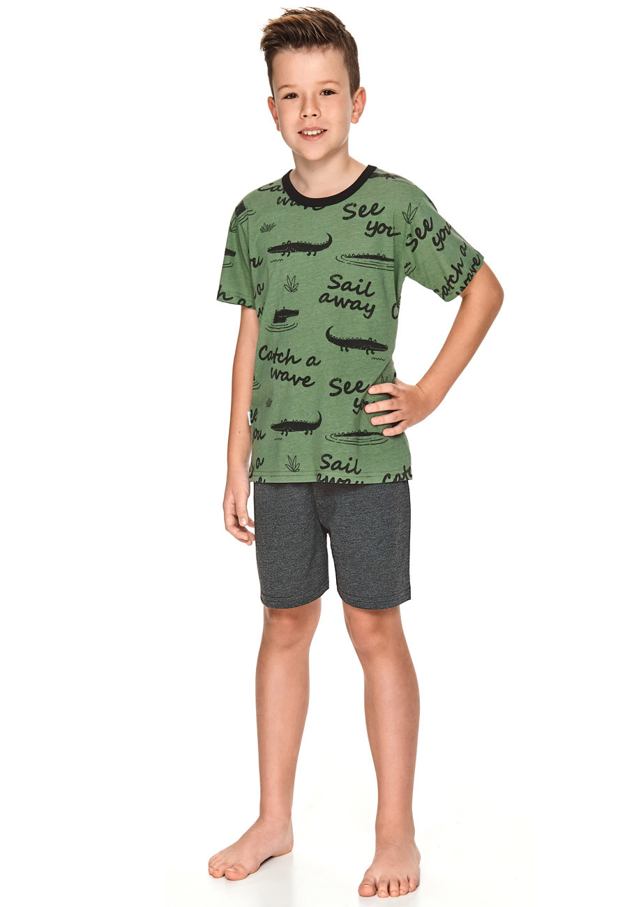 chlapčenské pyžamo s krátkym rukávom, krátke nohavice - všívaná guma v páse nohavíc. Pyžamo je vyrábané v sérii "otec a syn" (pánske pyžamo Luka2728, Jura2729).