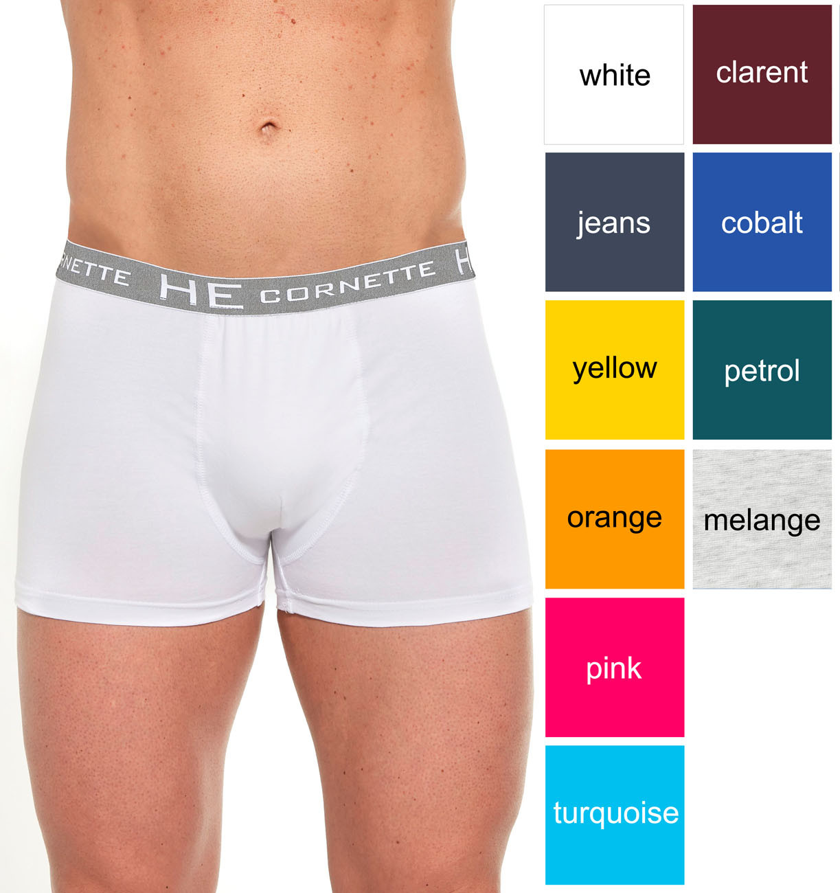 Model má ploché švy a v páse má všitú pohodlnú širokú gumu s nápisom "Cornette".