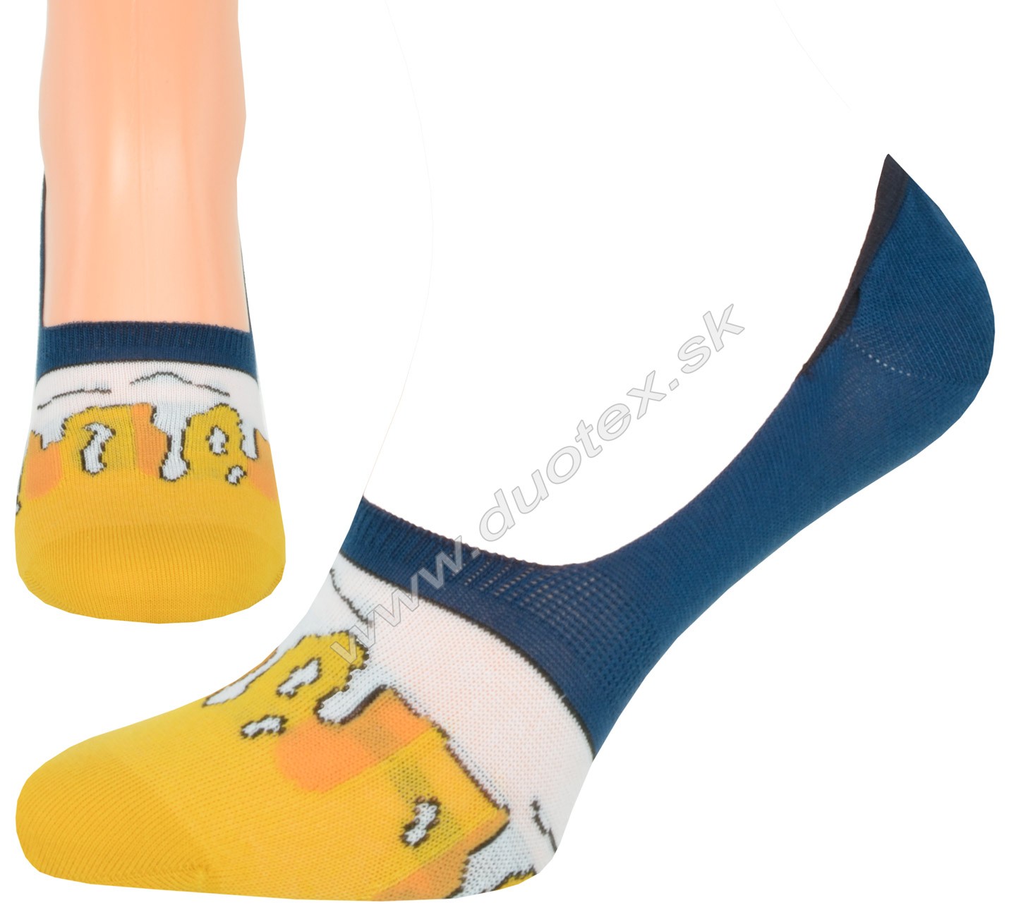 tenké výrazne vzorované pánske elastické ponožky vhodné do mokasín. Špeciálna konštrukcia päty doplnená silikónom zabraňuje zosúvaniu ponožky z päty. Netlačiaci elastický prúžok po obvode chodidla fixuje ponožku proti posuvu.