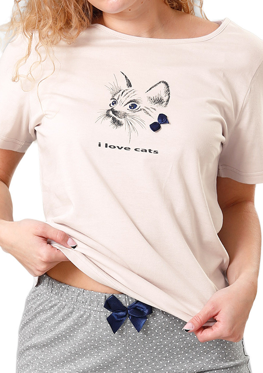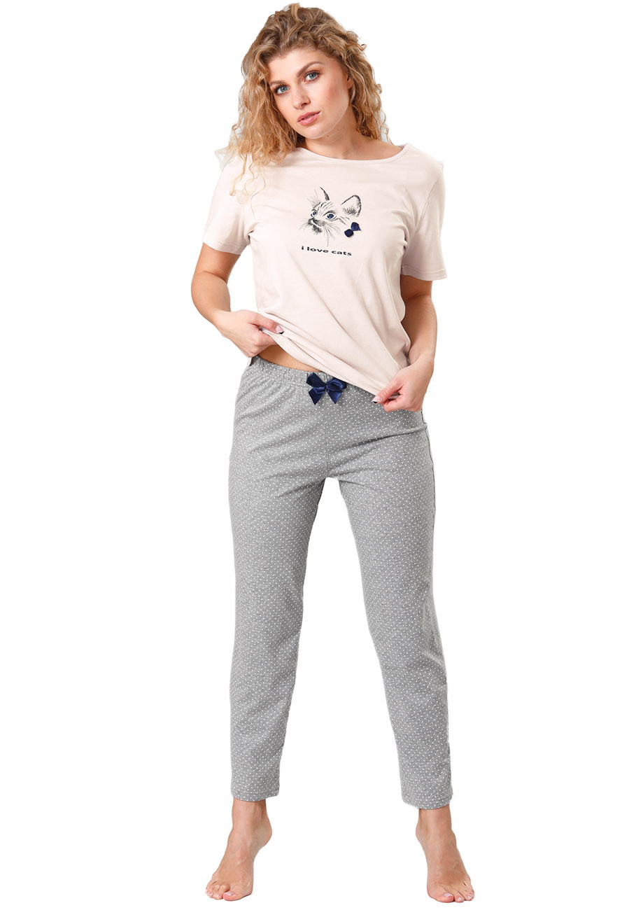 dámske pyžamo s krátkym rukávom a dlhými nohavicami vyrobené z úpletu zo 100% bavlny - všívaná guma v páse nohavíc