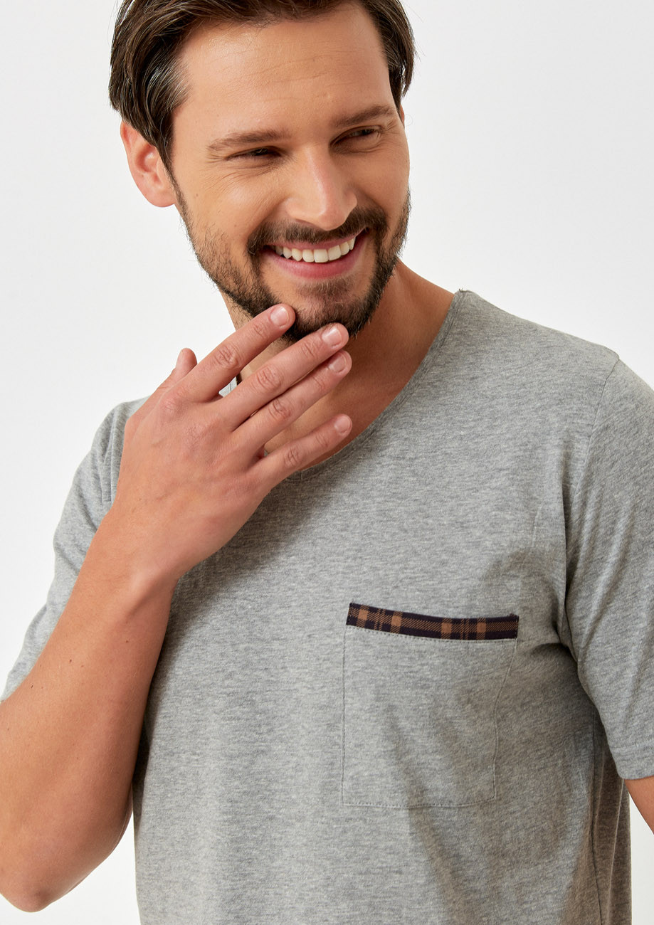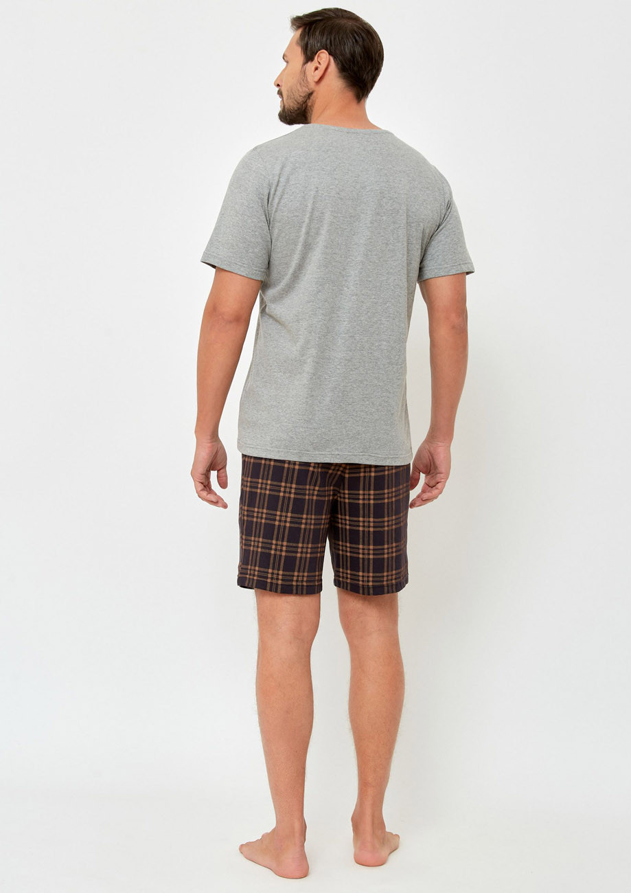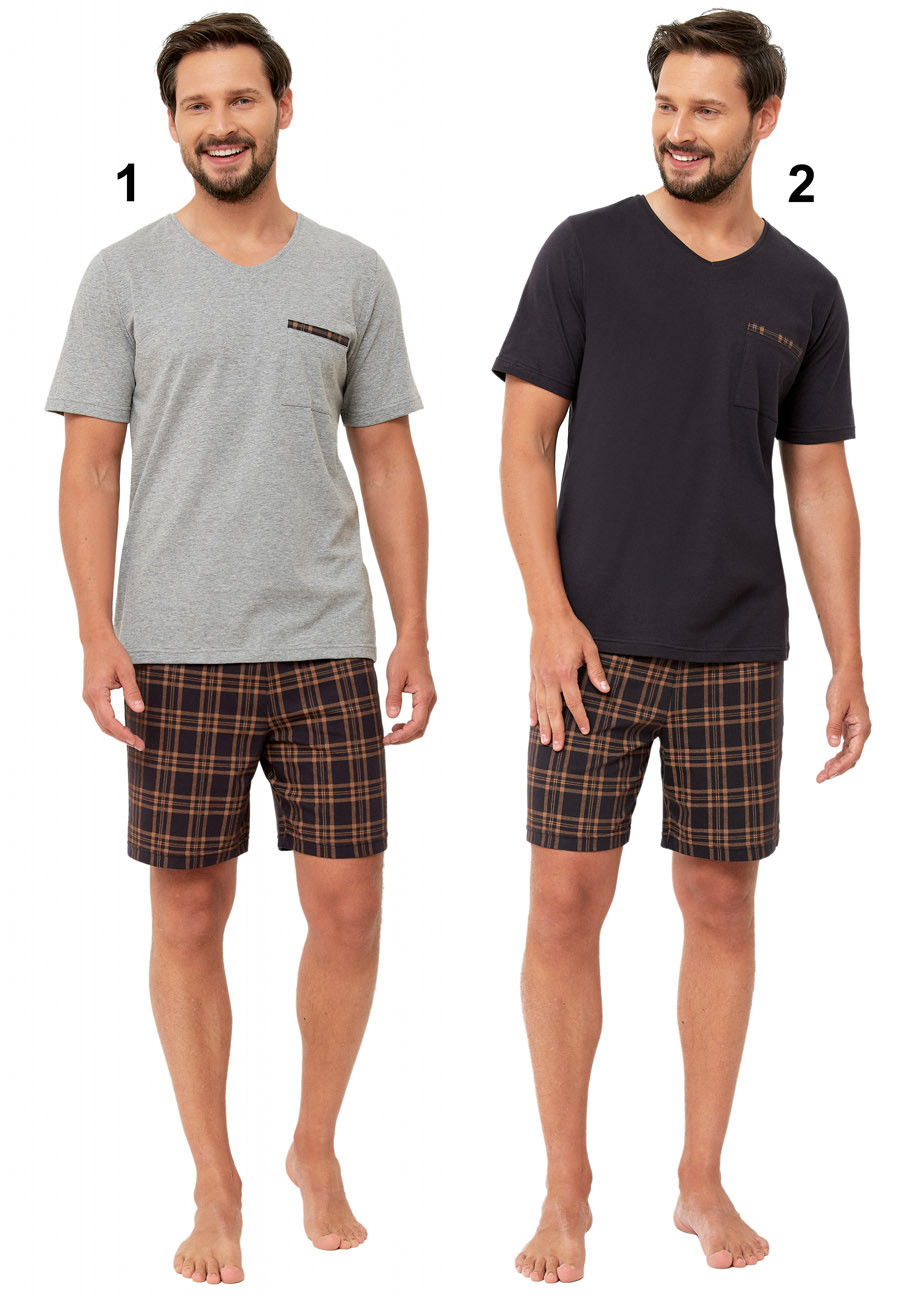 pánske pyžamo s krátkym rukávom a krátkymi nohavicami vyrobené zo 100% bavlneného úpletu, všívaná guma v páse nohavíc