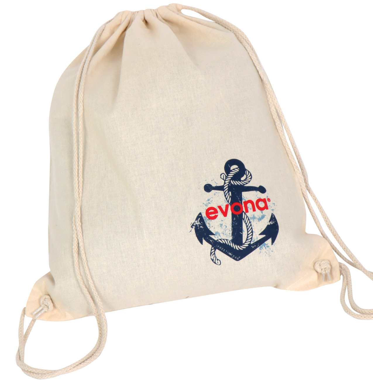Štýlový batoh veľkosti 38x45cm vyrobený z tkaniny zo 100% bavlny využijete na každodenné nosenie športovného alebo iného vybavenia. Zatváranie na sťahovaciu šnúrku prírodnej farby umožňuje prístup do hlavného oddielu.