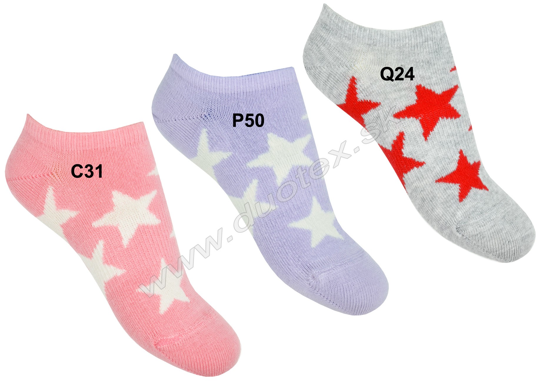 detské vzorované bavlnené členkové ponožky, obracaný lem. Elastický prúžok okolo chodidla obmedzuje pretáčanie a posúvanie ponožky na nohe.