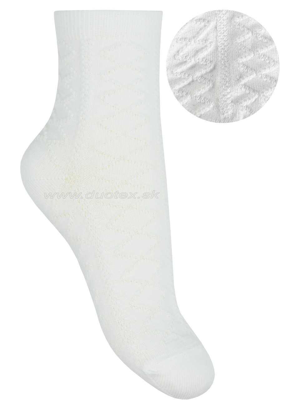 detské biele elastické bavlnené ponožky s plastickým ažúrovým vzorom, obracaný lem.