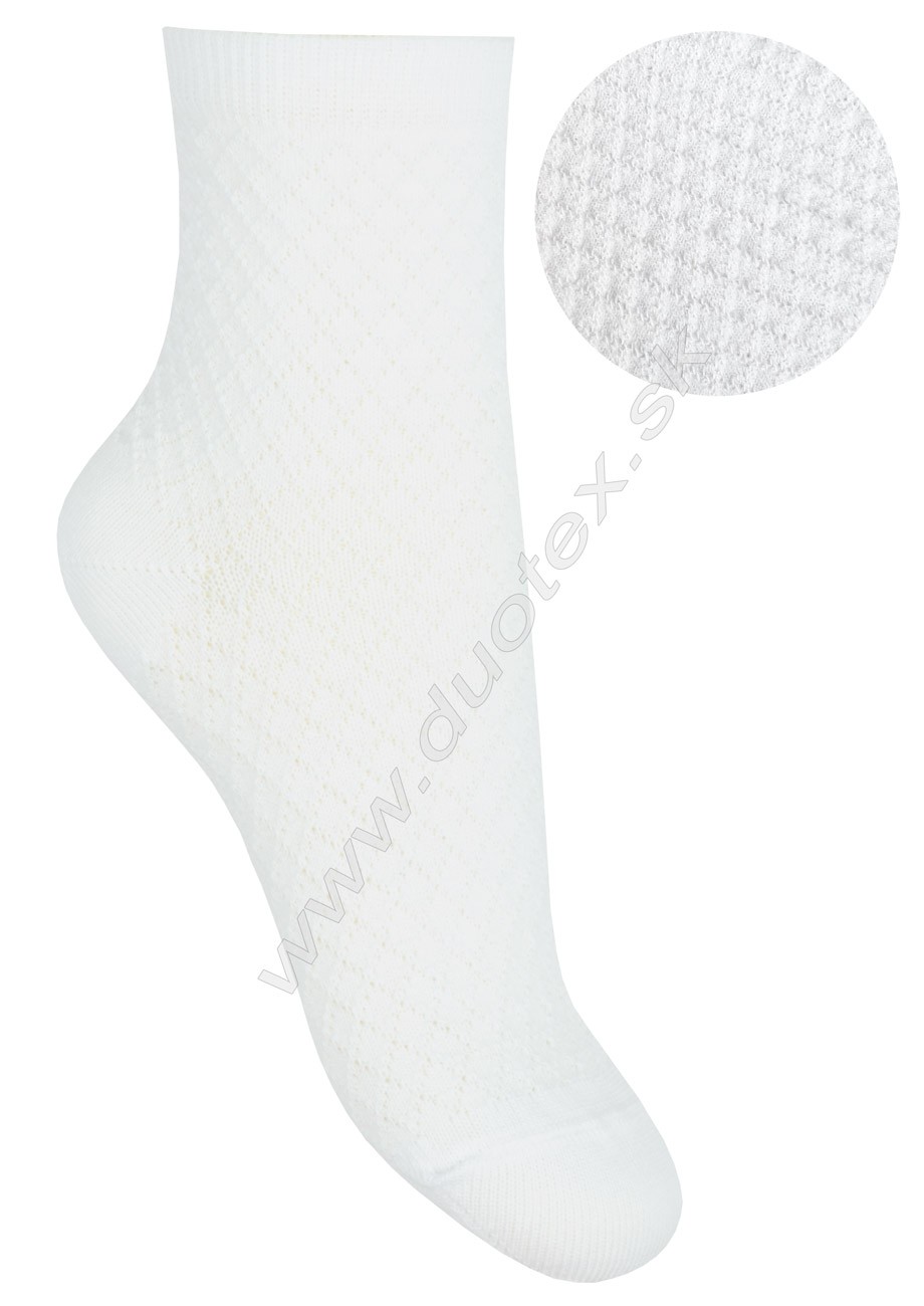 detské hladké biele elastické bavlnené ponožky s plastickým ažúrovým vzorom, obracaný lem