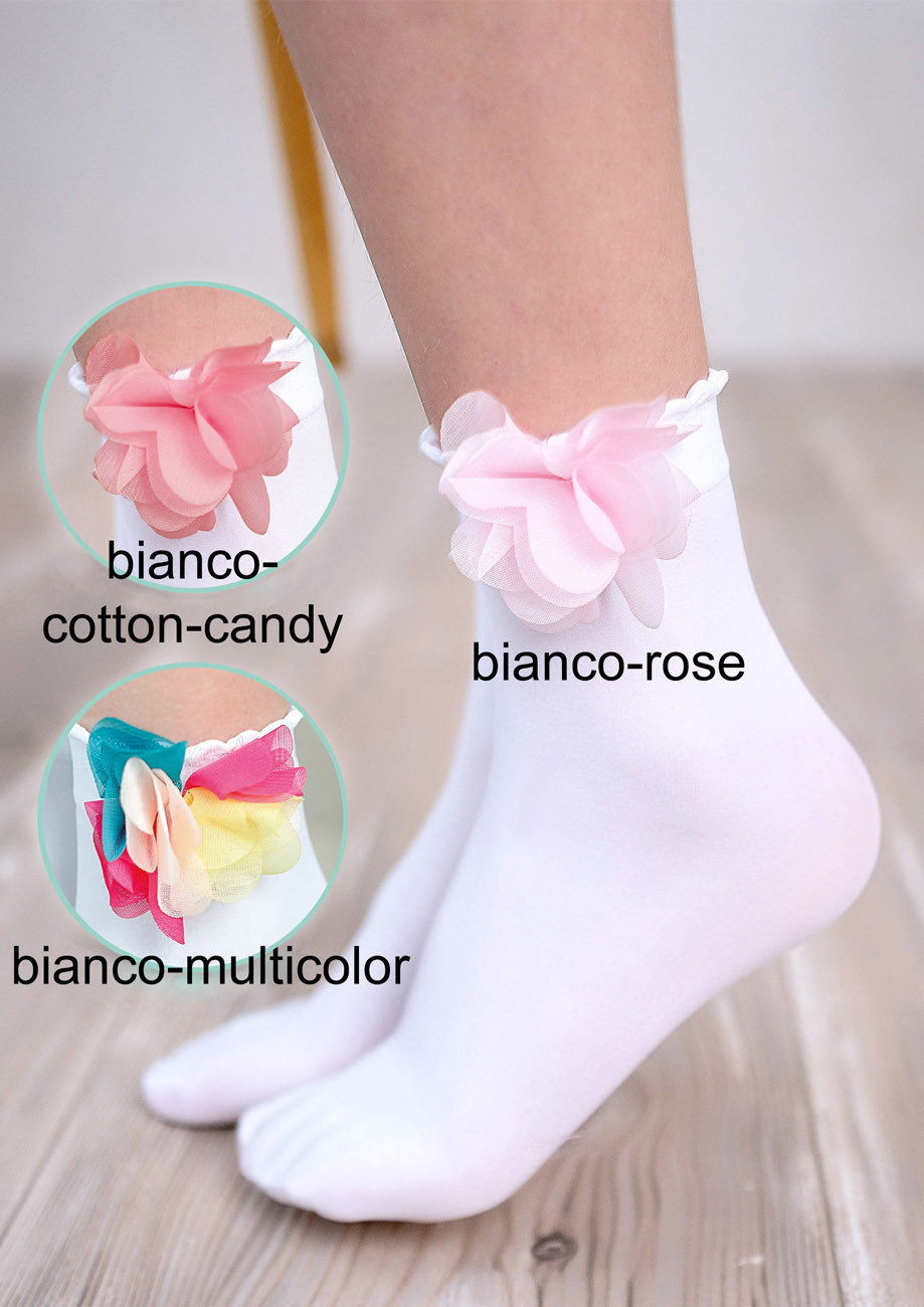 detské jemné hladké ponožky z mikrovlákna s výraznou aplikáciou na členku. Sú vyrobené zo špeciálne opletanej priadze, ktorá zvyšuje trvácnosť a odolnosť výrobku voči zatiahnutiu.