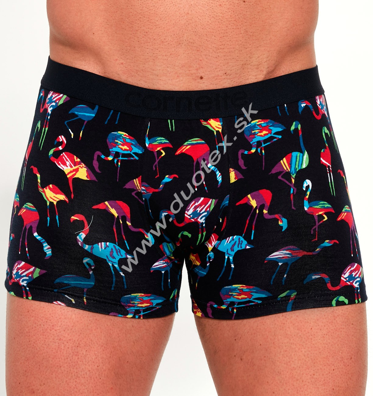 Pánske boxerky vyrobené z veľmi kvalitnej bavlny. Vďaka elastanu sa prispôsobia postave a poskytujú maximálny komfort a pohodlie pri nosení. Model má ploché švy a v páse má všitú pohodlnú širokú gumu s nápisom "Cornette". Boxerky sú zabalené v krabičke.