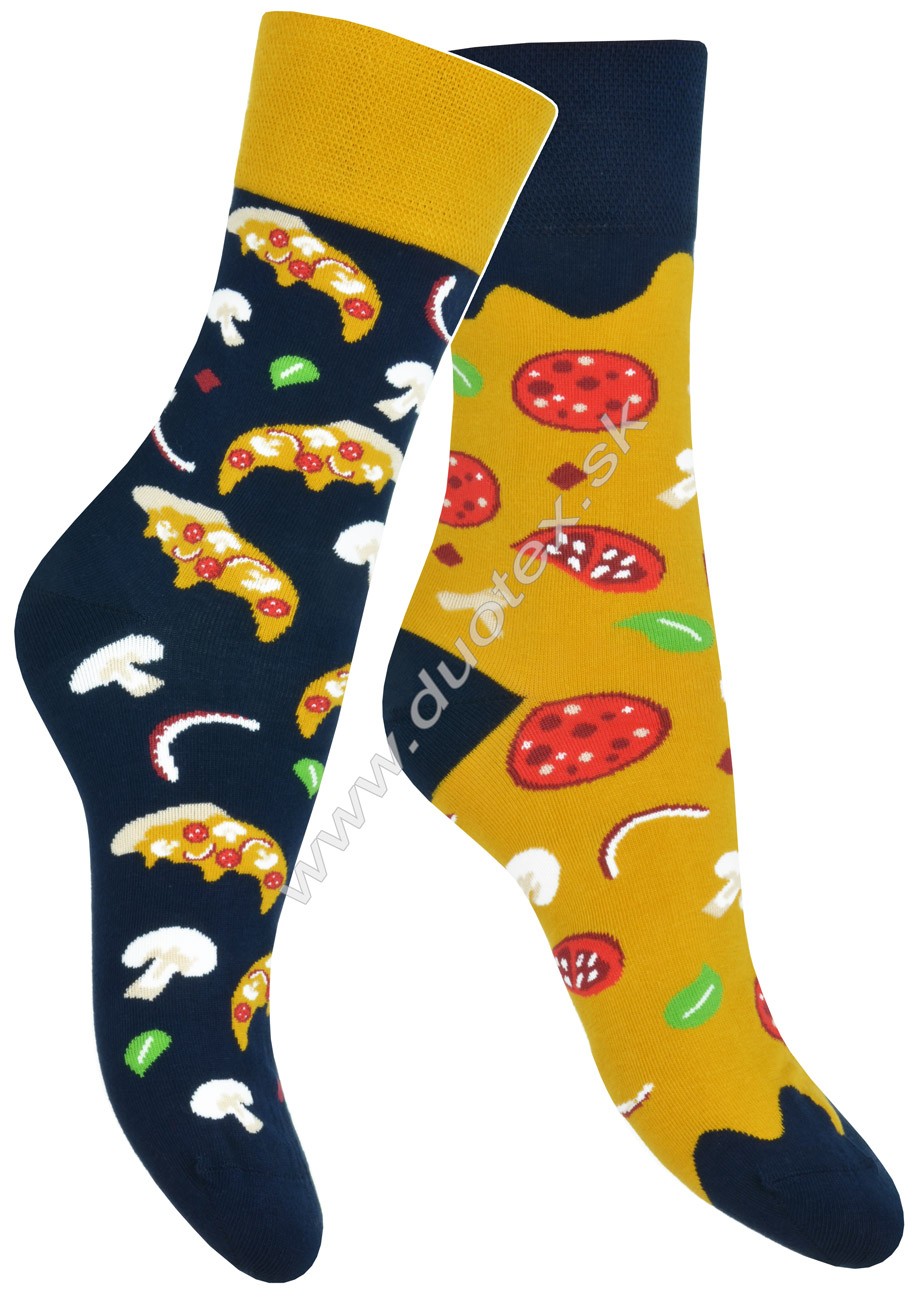 luxusné vzorované elastické ponožky najvyššej triedy kvality. Úplne hladká retiazkovaná špica, nahradzajúca bežný šev, netlačí ani v tesnej obuvi a zaručuje najvyšší komfort, čo oceníte hlavne pri celodennom nosení. Komfort nosenia zvyšuje pohodlný prevesený netlačiaci lem, ktorý lepšie drží na nohe a zároveň má vyššiu trvácnosť. Použitie najkvalitnejších materiálov a vypletenie 200 ihlovým strojom umocňuje luxusný vzhľad ponožiek. Jeden pár ponožiek tvoria dva rôzne navzájom zladené vzory. Ponožky pre tých, ktorí oceňujú originálnosť.