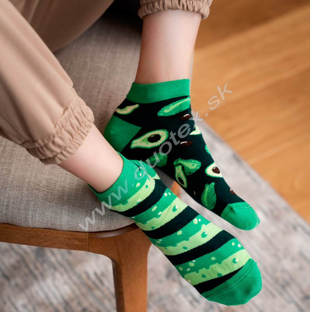 luxusné vzorované členkové elastické ponožky najvyššej triedy kvality. Úplne hladká retiazkovaná špica, nahradzajúca bežný šev, netlačí ani v tesnej obuvi a zaručuje najvyšší komfort, čo oceníte hlavne pri celodennom nosení. Komfort nosenia zvyšuje pohodlný prevesený netlačiaci lem, ktorý lepšie drží na nohe a zároveň má vyššiu trvácnosť. Použitie najkvalitnejších materiálov a vypletenie 200 ihlovým strojom umocňuje luxusný vzhľad ponožiek. Jeden pár ponožiek tvoria dva navzájom zladené vzory. S týmito ponožkami nesplyniete s davom - budete originálni!