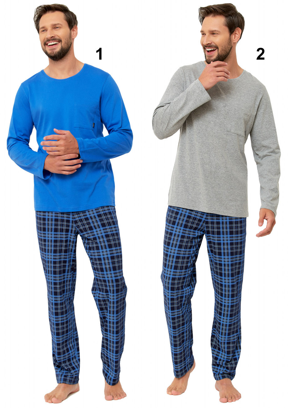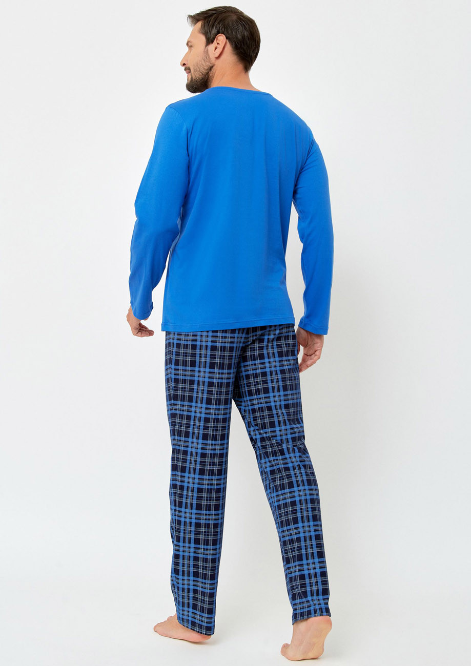pánske pyžamo s dlhým rukávom a dlhými nohavicami - všívaná guma v páse nohavíc