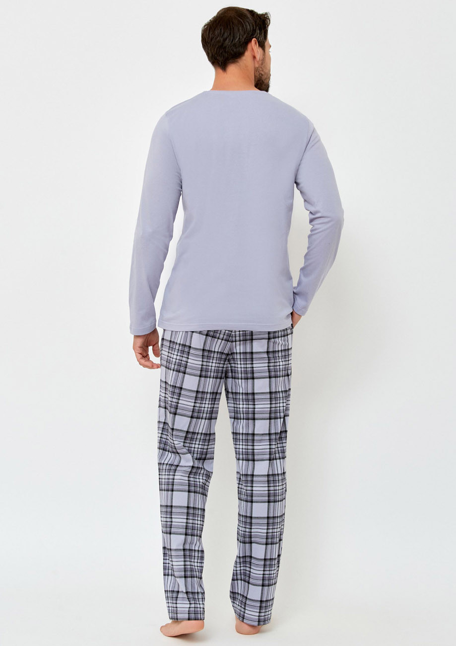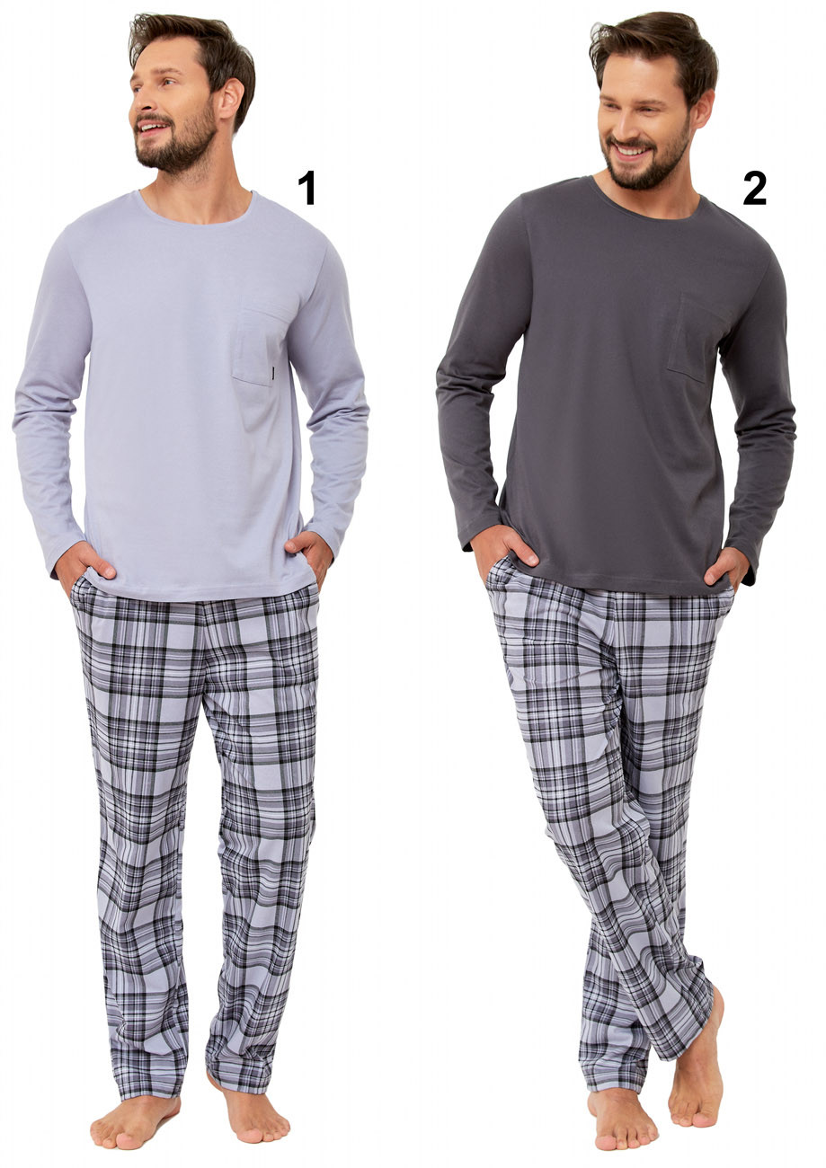 pánske pyžamo s dlhým rukávom a dlhými nohavicami s bočnými vreckami - všívaná guma v páse nohavíc