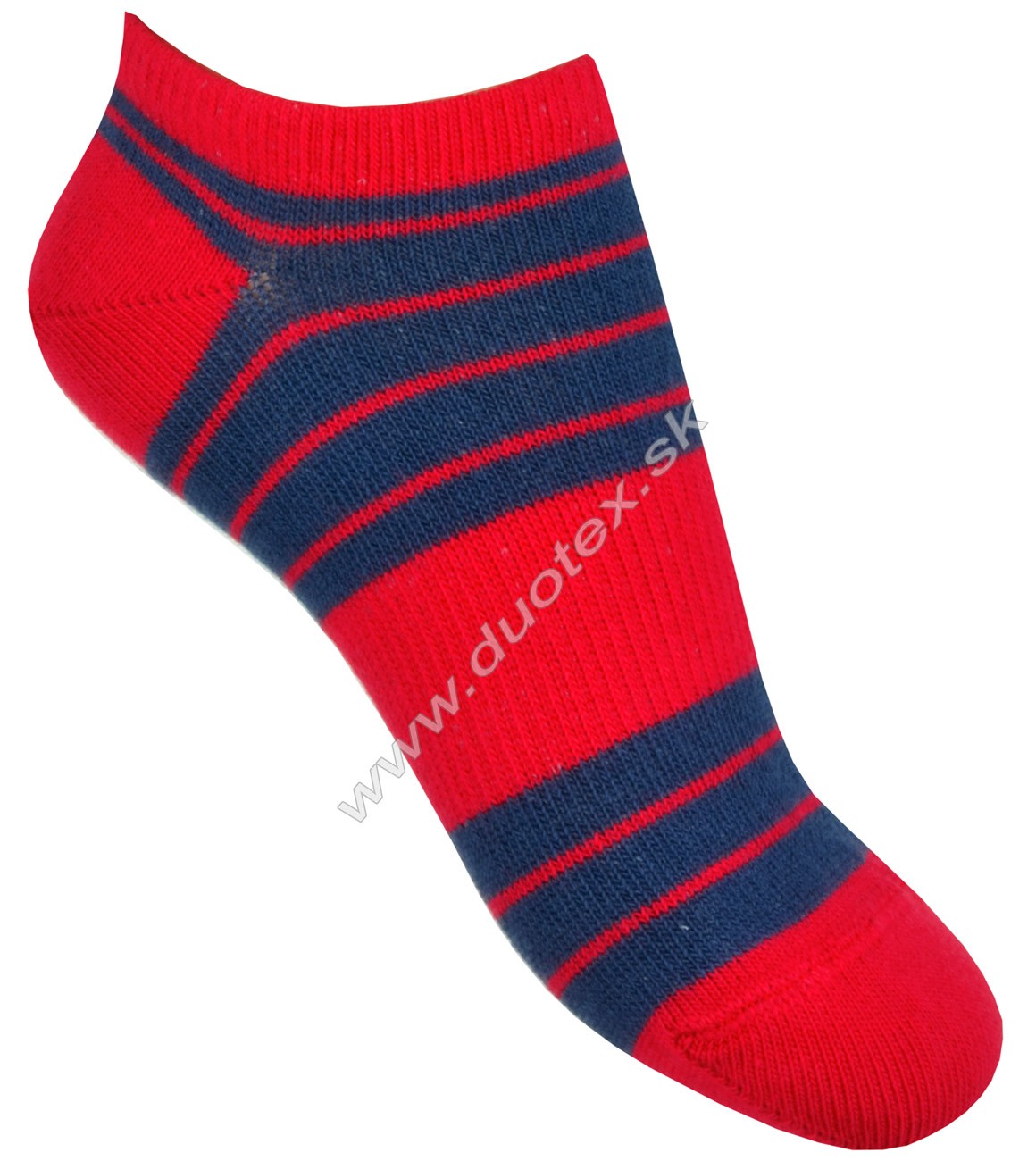 detské vzorované bavlnené členkové ponožky, obracaný lem. Elastický prúžok okolo chodidla obmedzuje pretáčanie a posúvanie ponožky na nohe.