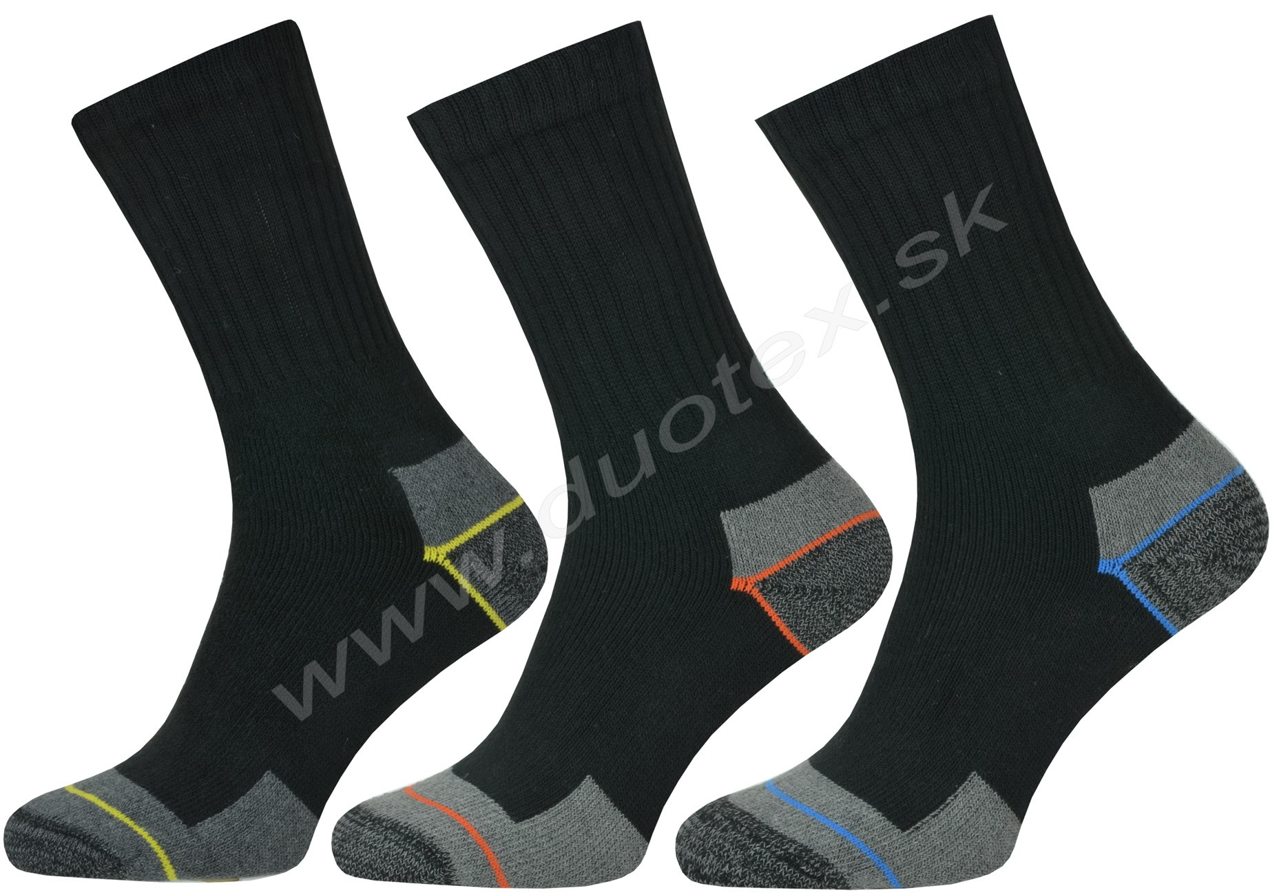 pánske teplé, pracovné ponožky, froté zvnútra. Trojpack sa skladá z troch párov rôznych farieb spojených jednou etiketou - viď. obrázok.