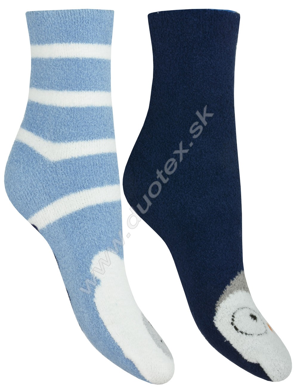 dámske teplé, extra jemné a mäkké ponožky s froté efektom na lícnej strane. Sú vyrábané so zvieracími motívmi na nártovej časti a s ABS na chodidle. Predávajú sa ako dvojpack, ktorý sa skladá z 2 párov ponožiek rôznych vzorov aj farieb - viď obrázok.