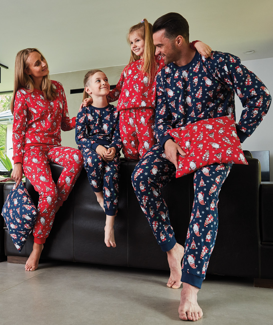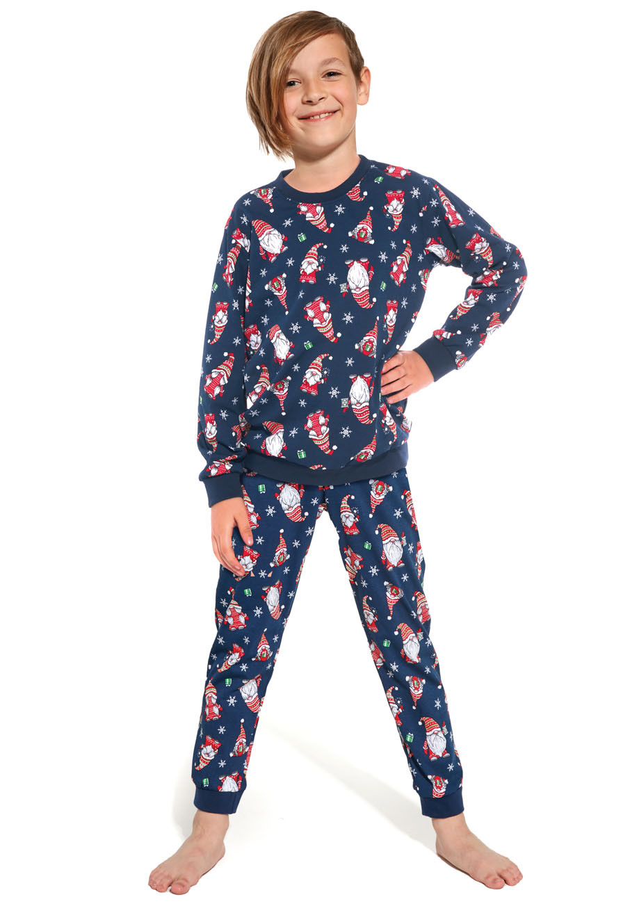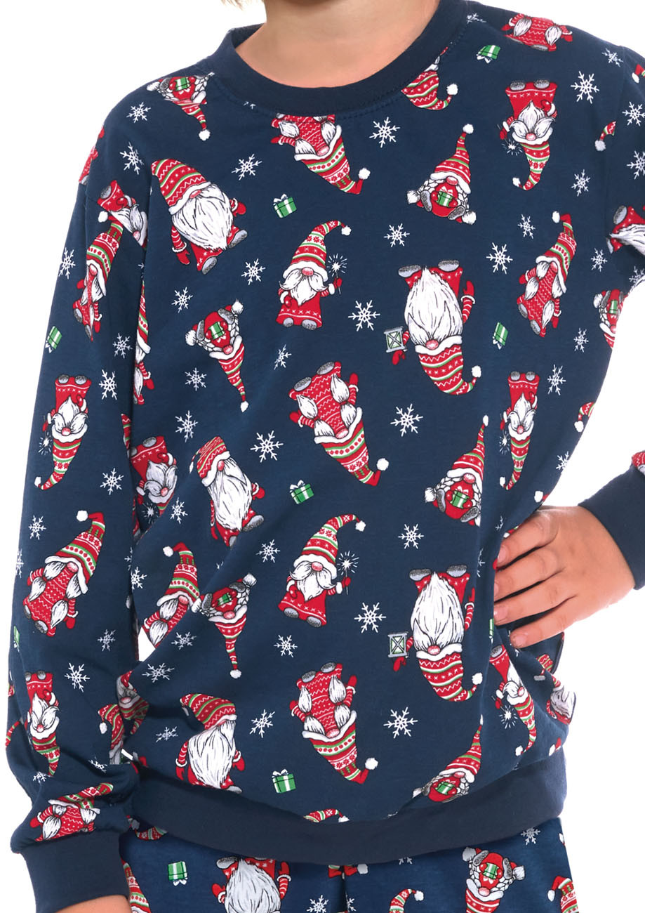 chlapčenské vianočné pyžamo s okrúhlym výstrihom, s dlhým rukávom a dlhými nohavicami, spodná časť rukávov i nohavíc stiahnutá do pružného lemu, všívaná široká guma v páse nohavíc. Pyžamo je vyrobené zo 100% bavlneného úpletu. Pyžamko patrí do vianočnej rodinnej kolekcie spolu s dievčenským pyžamom 032/163-Gnomes, s dámskym pyžamom 163-Gnomes a pánskym pyžamom 195-Gnomes. Vytvorte si vianočnú pohodu s pyžamami Gnomes (mama a dcéra, otec a syn) .