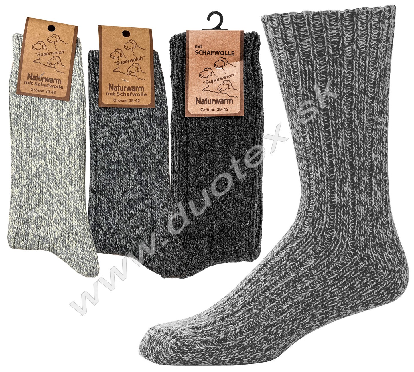 teplé zimné ponožky s vysokým podielom vlny, ktorá im dodáva mimoriadnu hrejivosť. Ponožky sú pohodlné vďaka rebrovej konštrukcii v nártovej a členkovej časti a sú ukončené pohodlným netlačiacim lemom.
