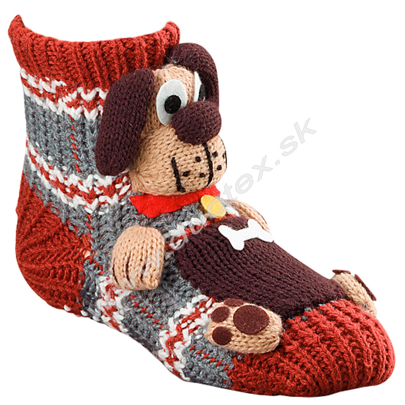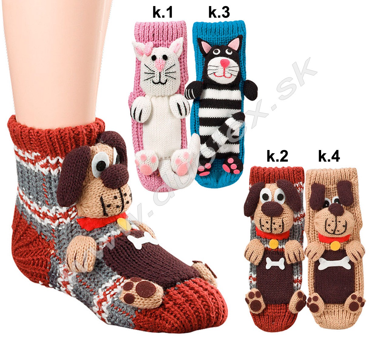 teplé ponožky z hrubého úpletu s 3D zvieratkom na nárte ponožky. Ponožky sú s ABS na chodidle, sú vhodné aj ako domáce papučky.