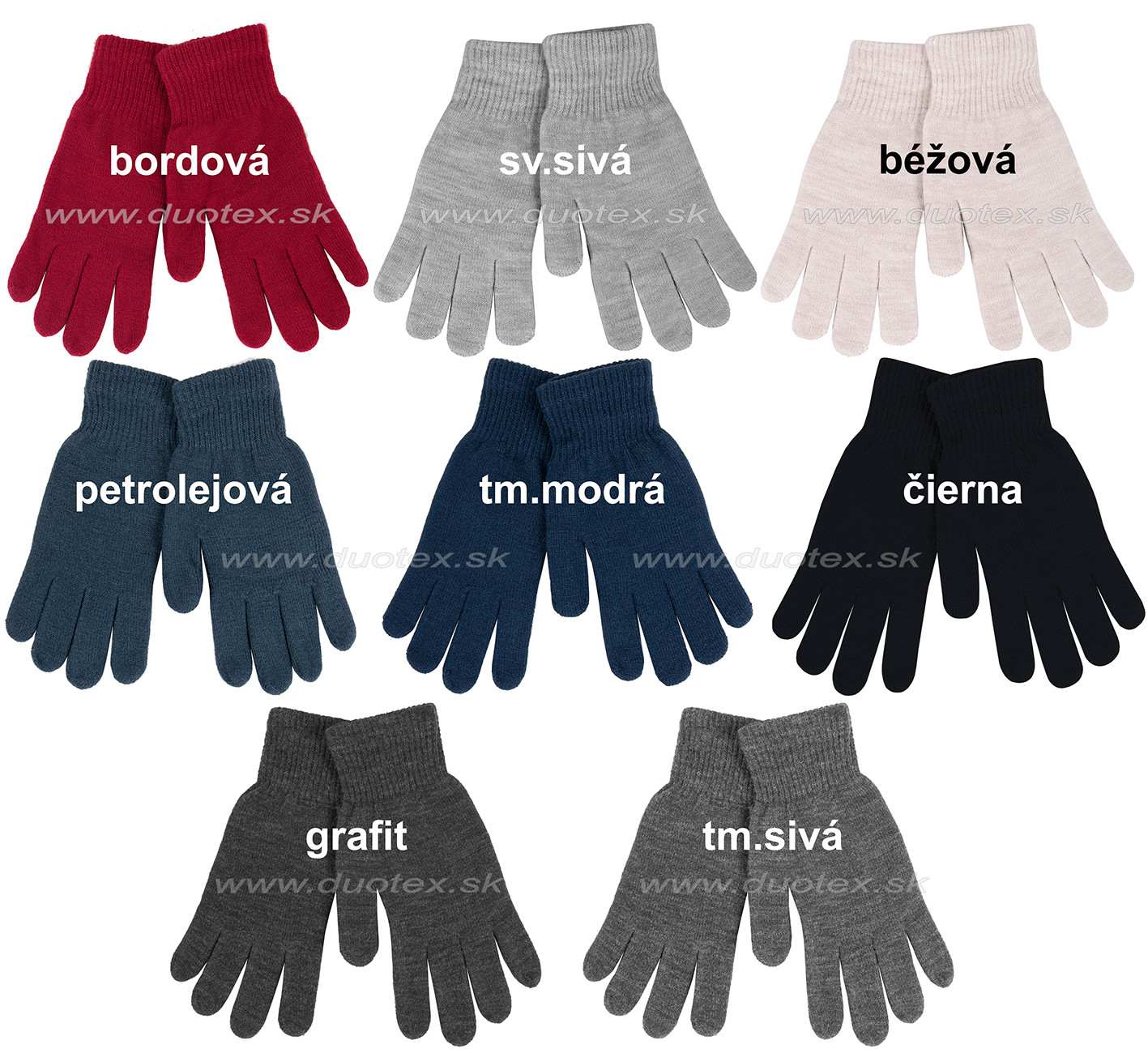Dámske rukavice vyrobené z úpletu s mäkkým jemne počesaným vnútrom.