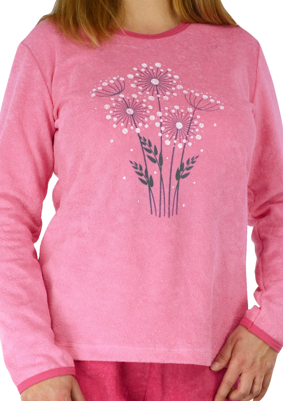 dámske froté pyžamo s dlhým rukávom a dlhými nohavicami s vysokým sedom, navliekaná guma v páse nohavíc