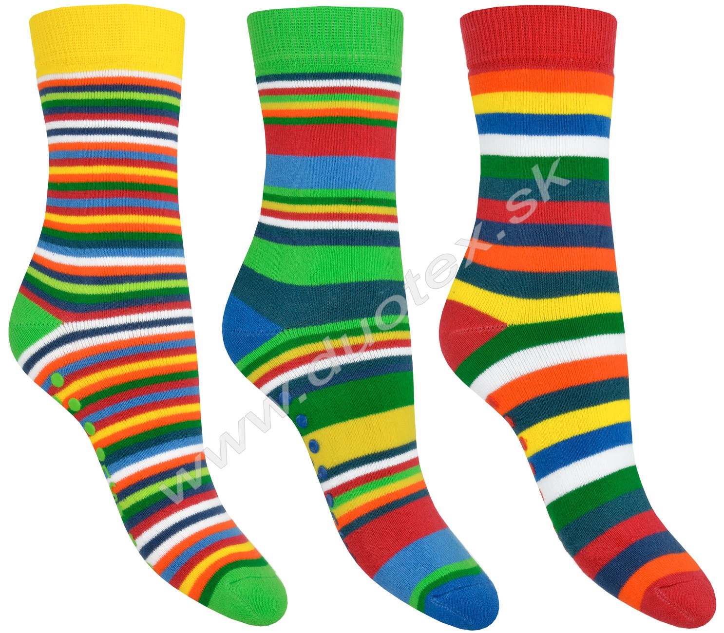 detské teplé vzorované ponožky s froté vrstvou vo vnútri. Ponožky sú vyhotovené s výrazným farebným pruhovaným vzorom a s ABS na chodidle.