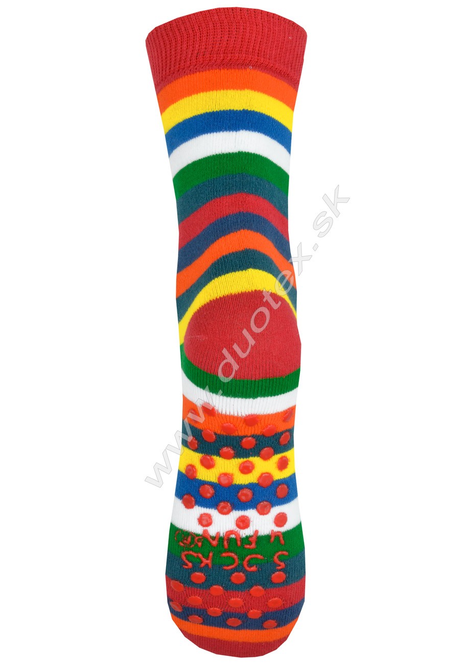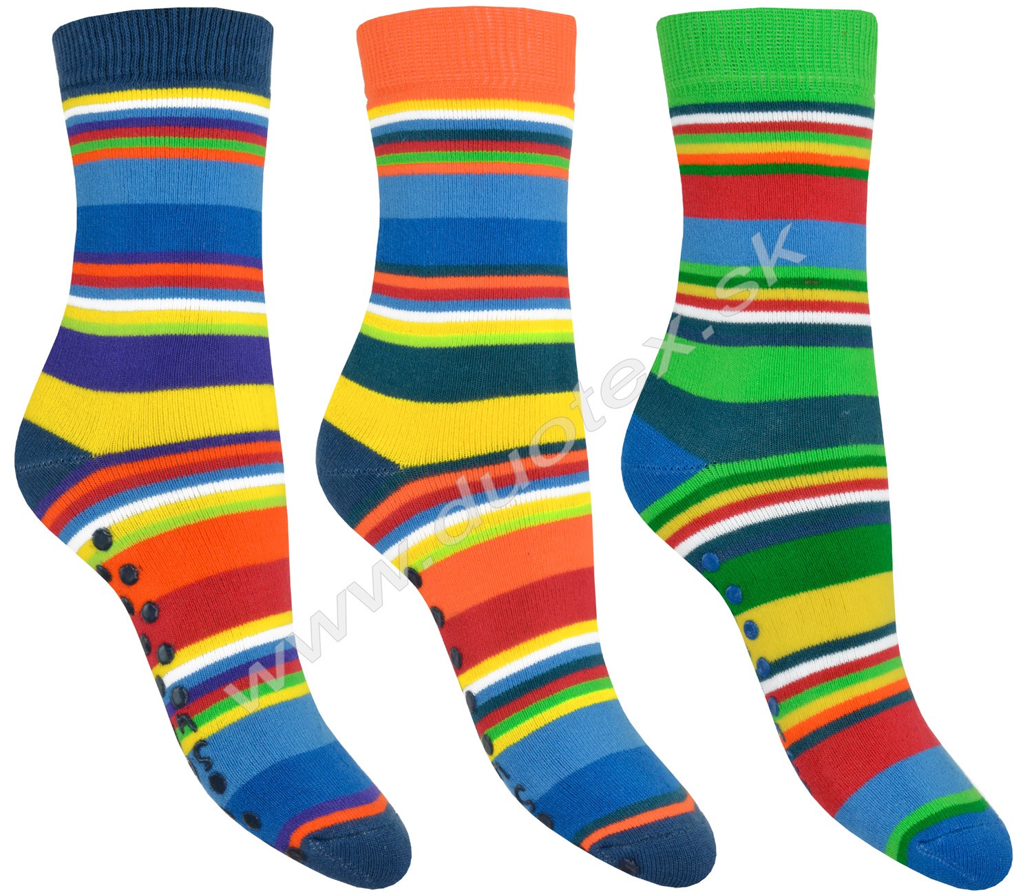 detské teplé vzorované ponožky s froté vrstvou vo vnútri. Ponožky sú vyhotovené s výrazným farebným pruhovaným vzorom a s ABS na chodidle.