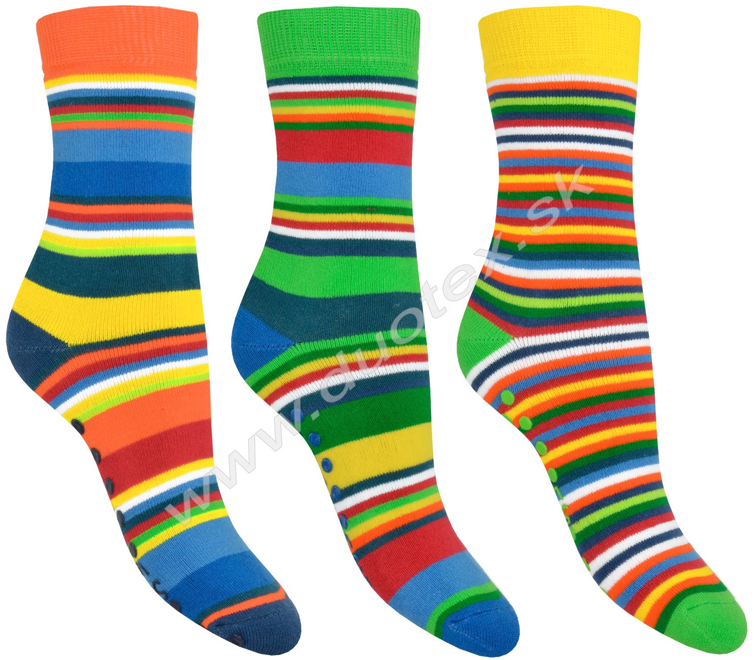 detské teplé vzorované ponožky s froté vrstvou vo vnútri. Ponožky sú vyhotovené s výrazným farebným pruhovaným vzorom a s ABS na chodidle.