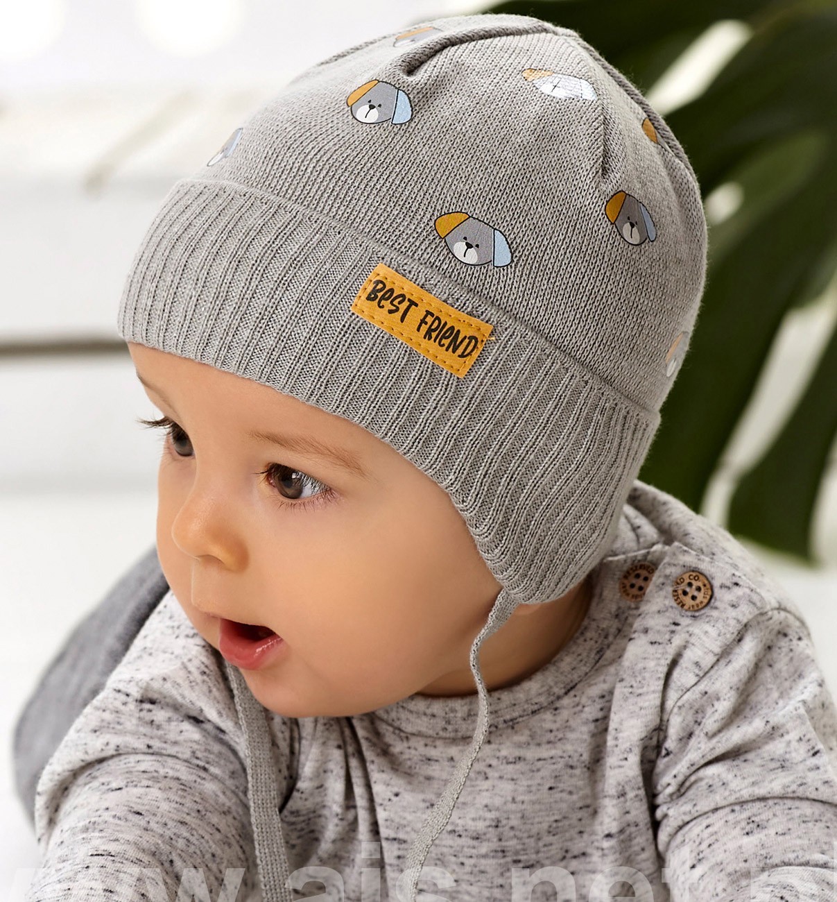 Detská tenká jednovrstvová čiapka vyrobená z jemného úpletu. Viazanie na šnúrky.