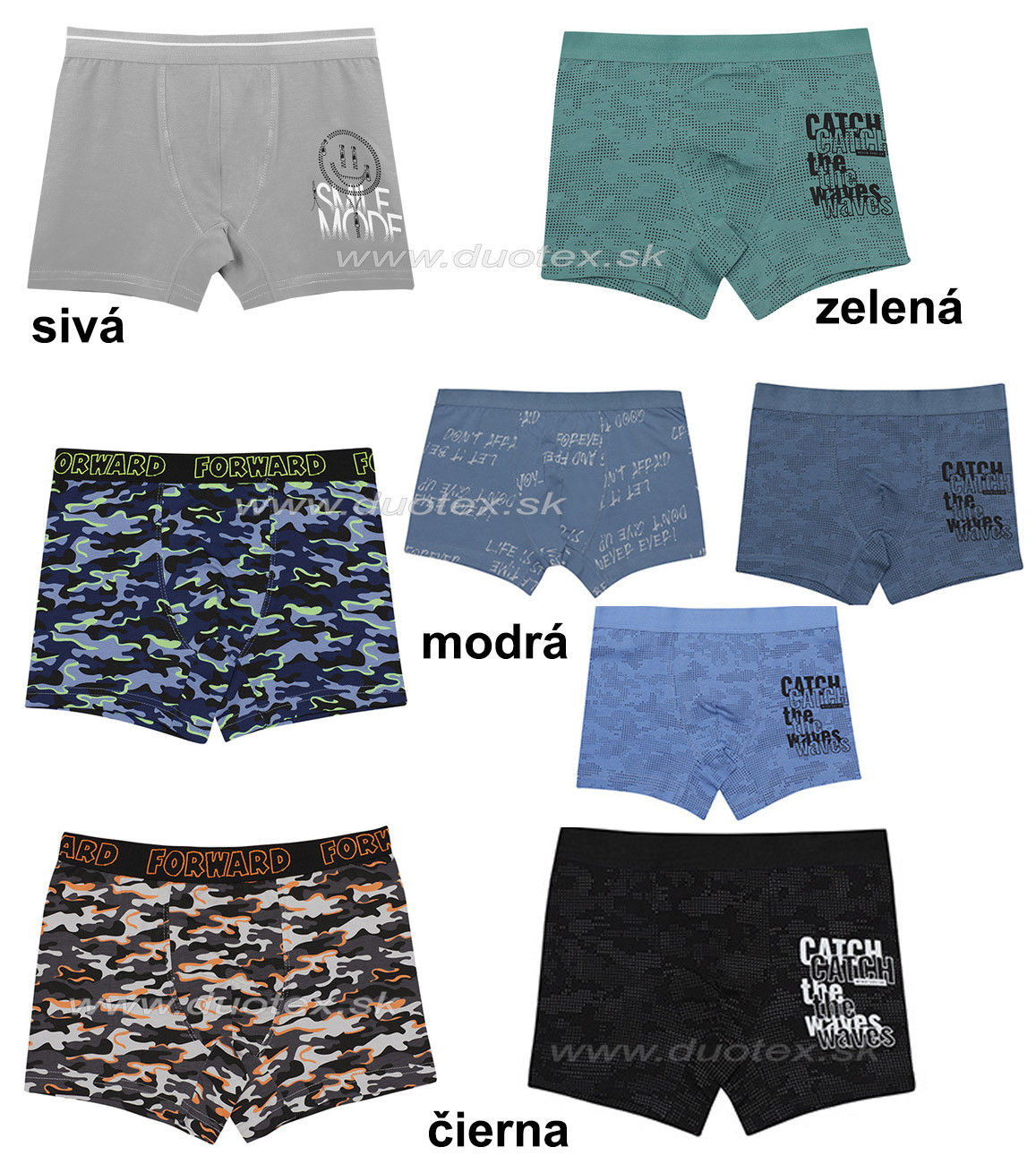 chlapčenské boxerky vyrábané z bavlneného úpletu s elastanom. Priložený obrázok je len ilustračný. Odtiene farieb a vzory potlače sa často menia, v každej dodávke môžu byť iné a nie je teda možné si vybrať konkrétný vzor. Našitá guma.