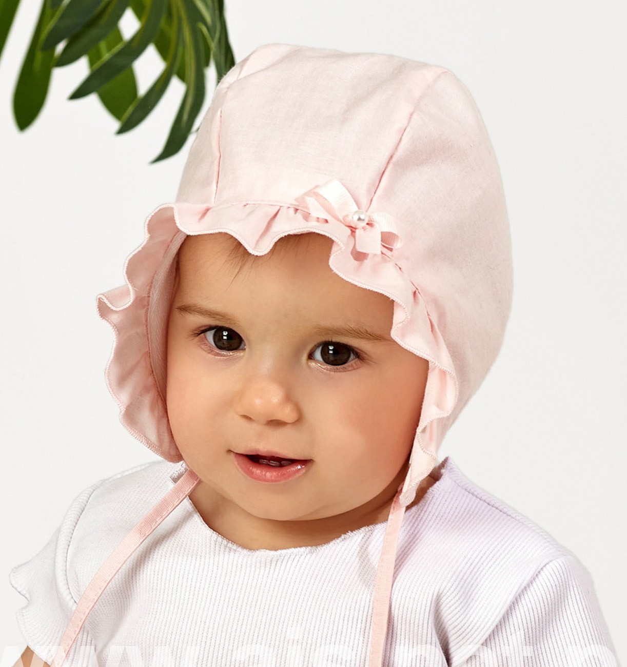 Detská letná čiapka-čepček vyrobená z ľahkej tenkej bavlnenej tkaniny. Je vyrobená so šnúrkami na viazanie.