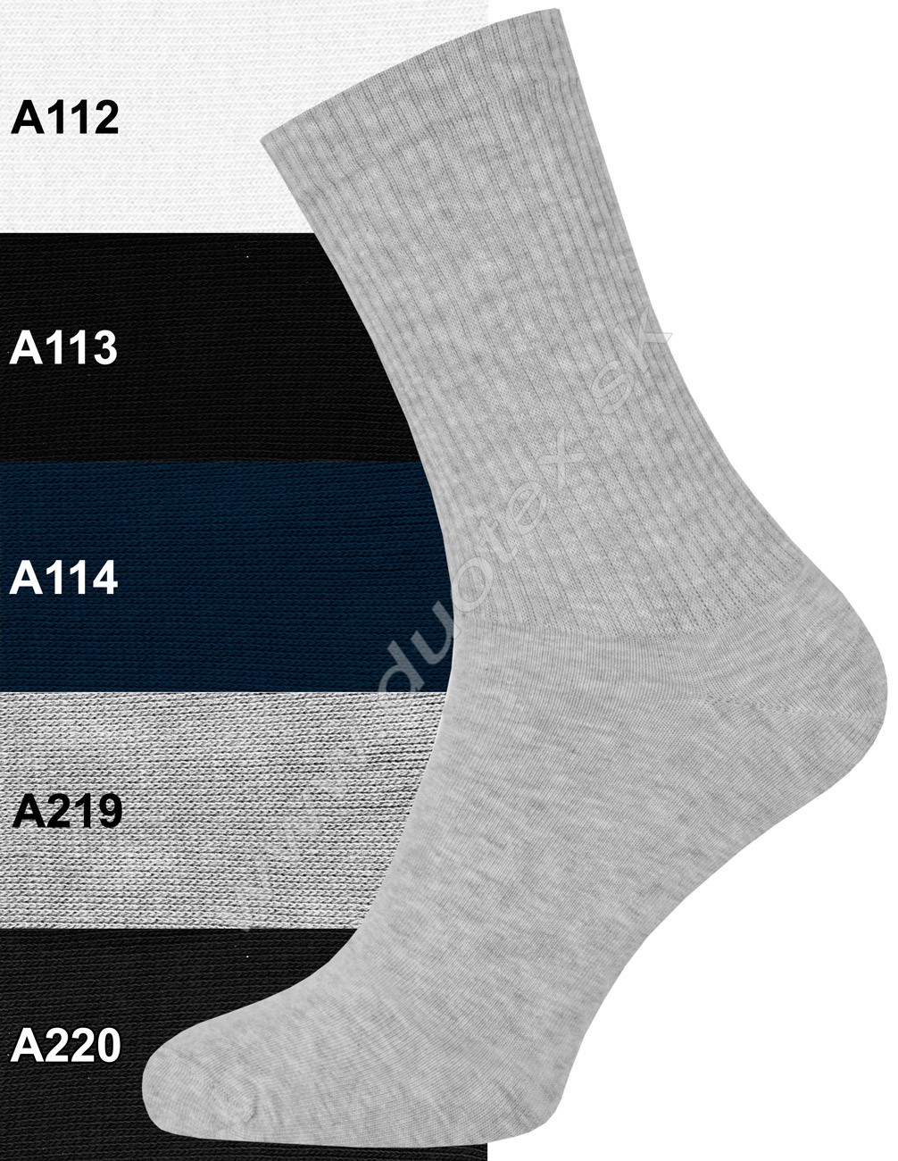 bavlnené elastické športové ponožky s vysokým elastickým rebrovaným preveseným lemom, ktorý zabezpečuje výbornú stabilitu ponožky na nohe a zvyšuje tým komfort pri nosení. S plochým švom na špičke.