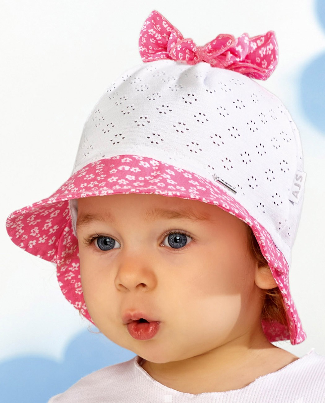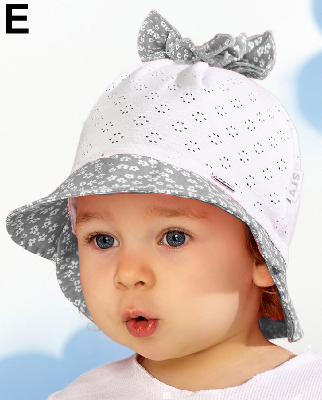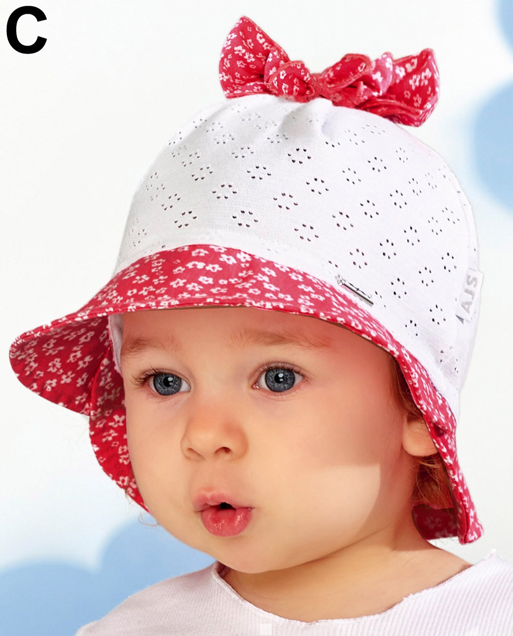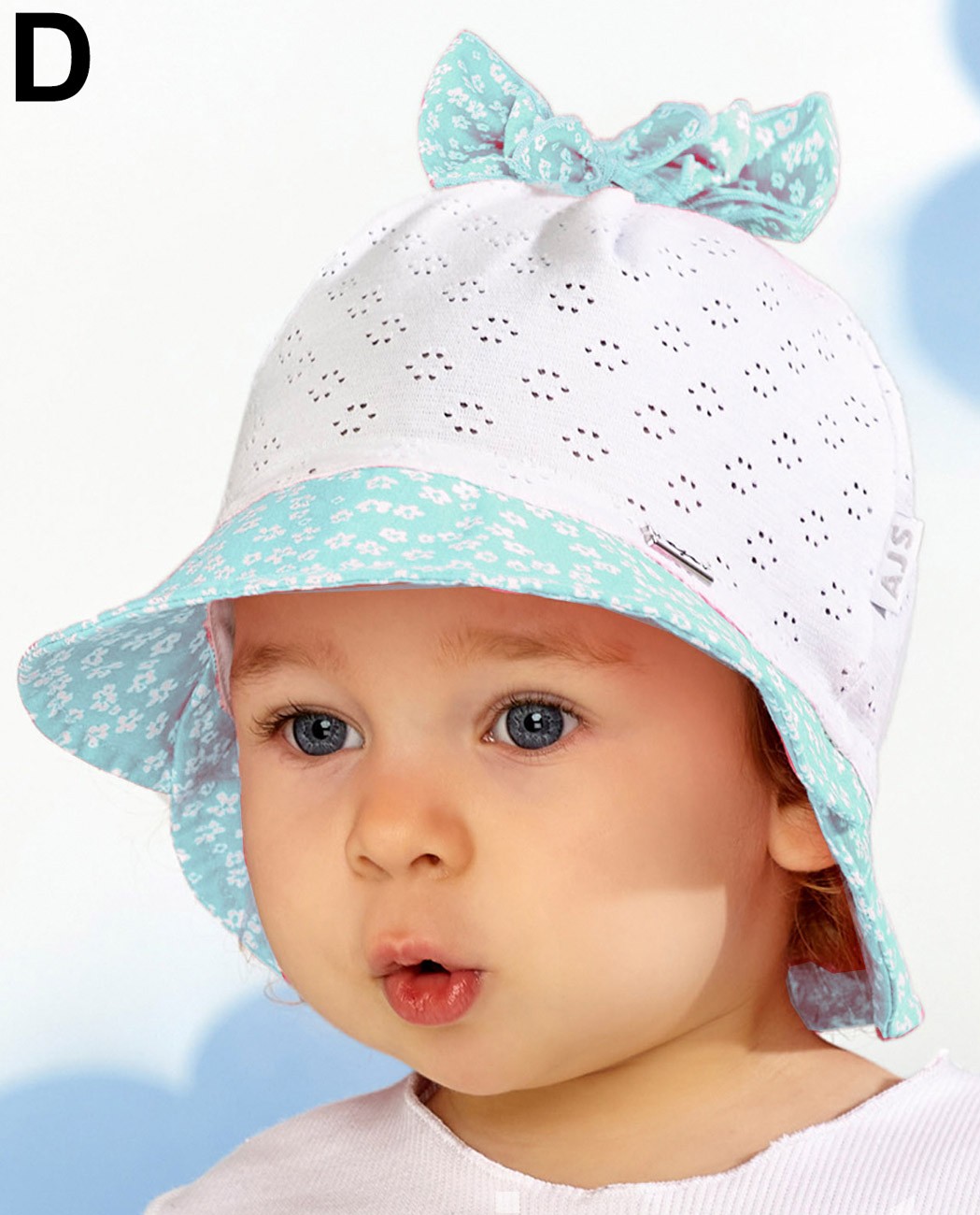 Detský letný klobúčik vyrobený z tenkej bavlnenej tkaniny v zadnej časti stiahnutý do gumičky.