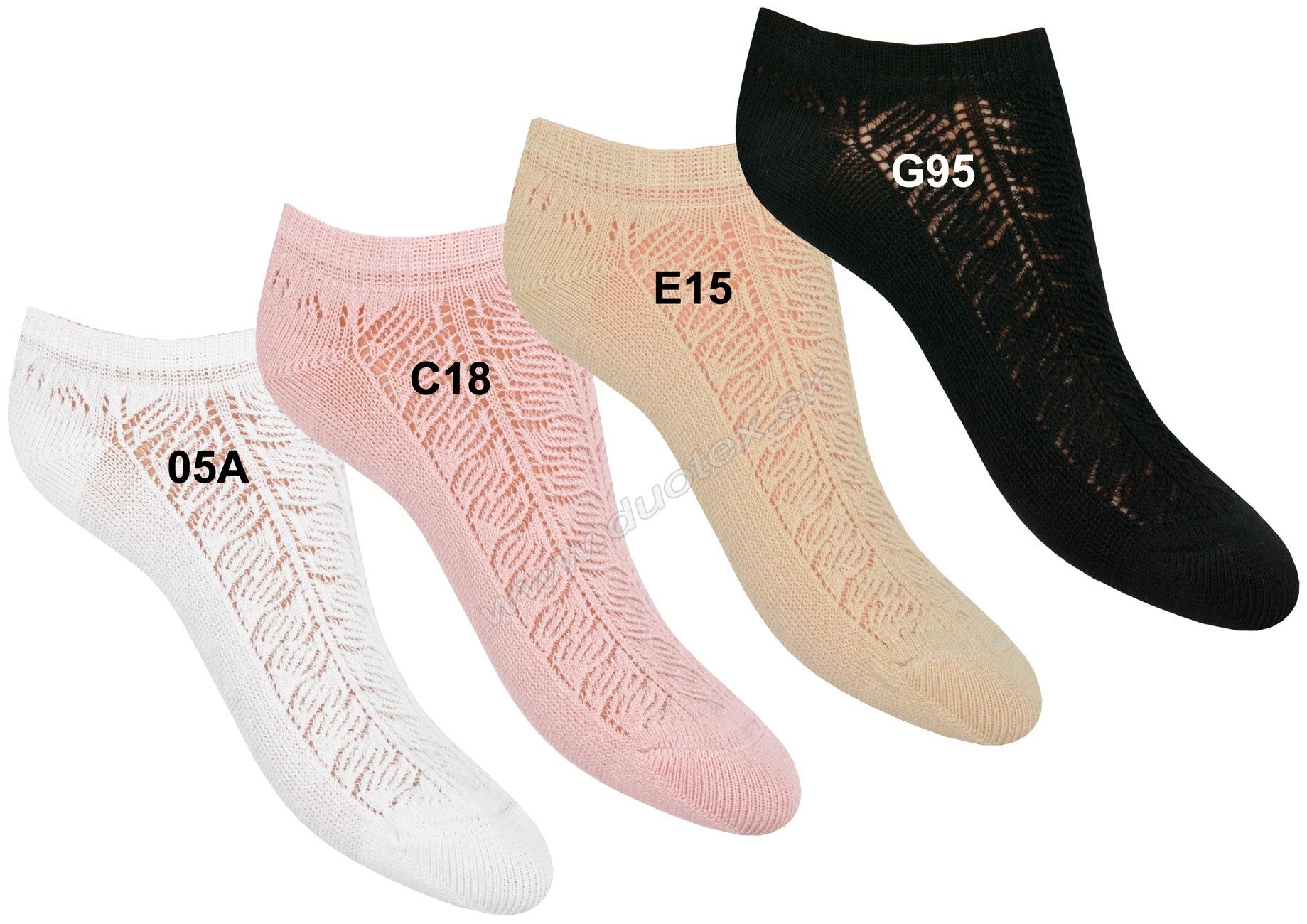 Ponožka má na nárte vypletaný jemný ažúrový vzor.
