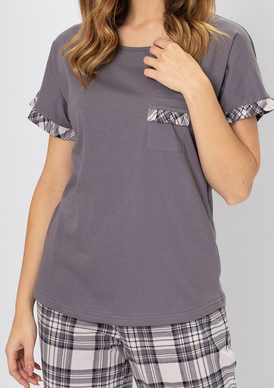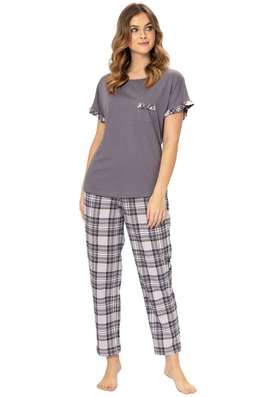dámske pyžamo s krátkymi rukávmi a dlhými nohavicami vyrobené zo 100% bavlny, všívaná guma v páse nohavíc.