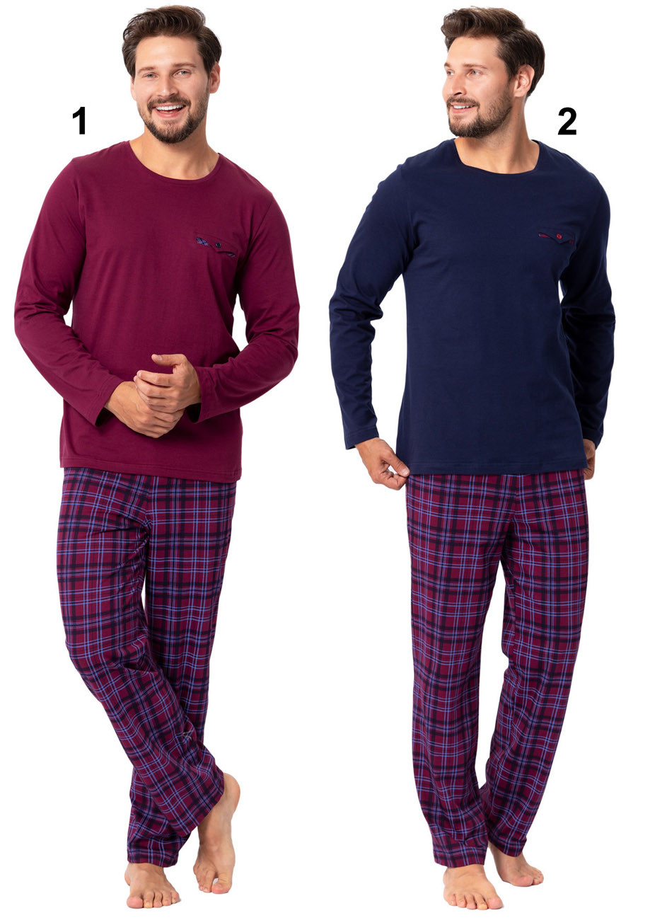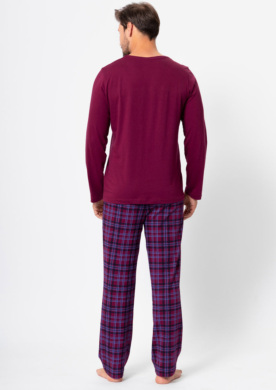 pánske pyžamo s dlhým rukávom a dlhými nohavicami vyrobené z úpletu zo 100% bavlny - všívaná guma v páse nohavíc