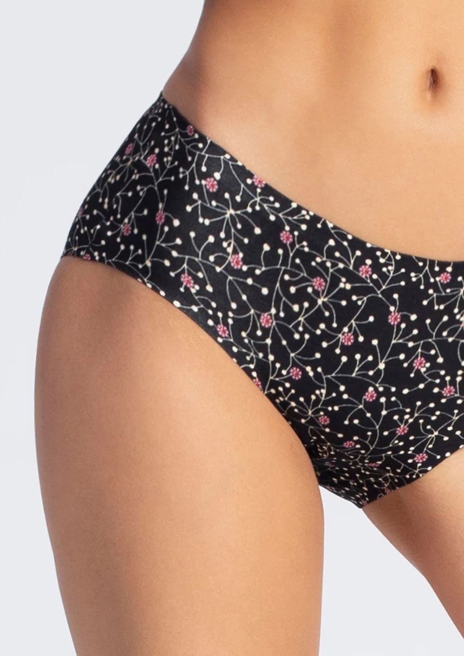 dámske bavlnené nohavičky klasického strihu vyhotovené z vysokokvalitnej tenkej bavlny. Použitie bezšvíkovej technológie spolu s použitím elastanu garantuje vysokú elasticitu a priľnavosť k telu. Jemné ukončenie výkrojov okolo nôh zvyšuje komfort nosenia.