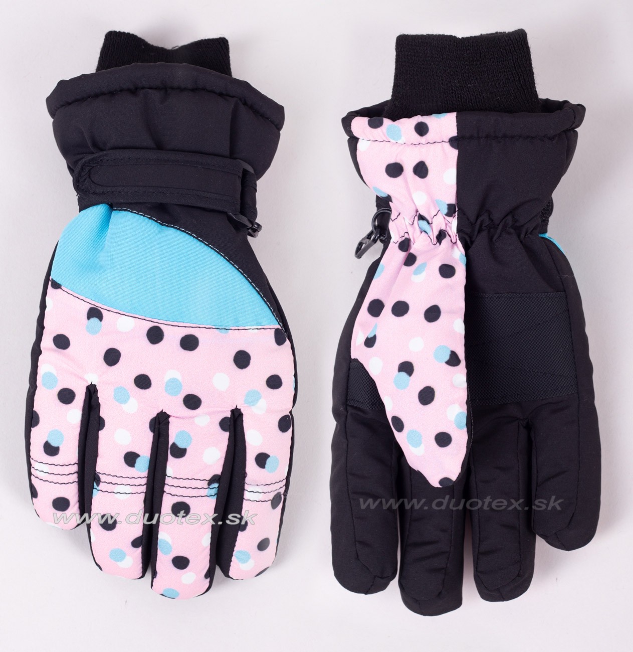Dámske teplé rukavice lyžiarského typu. Rukavice majú elastickú manžetu a vnútro je vyteplené hrubou hrejivou vrstvou. V oblasti dlane sú opatrené pogumovaným materiálom.
