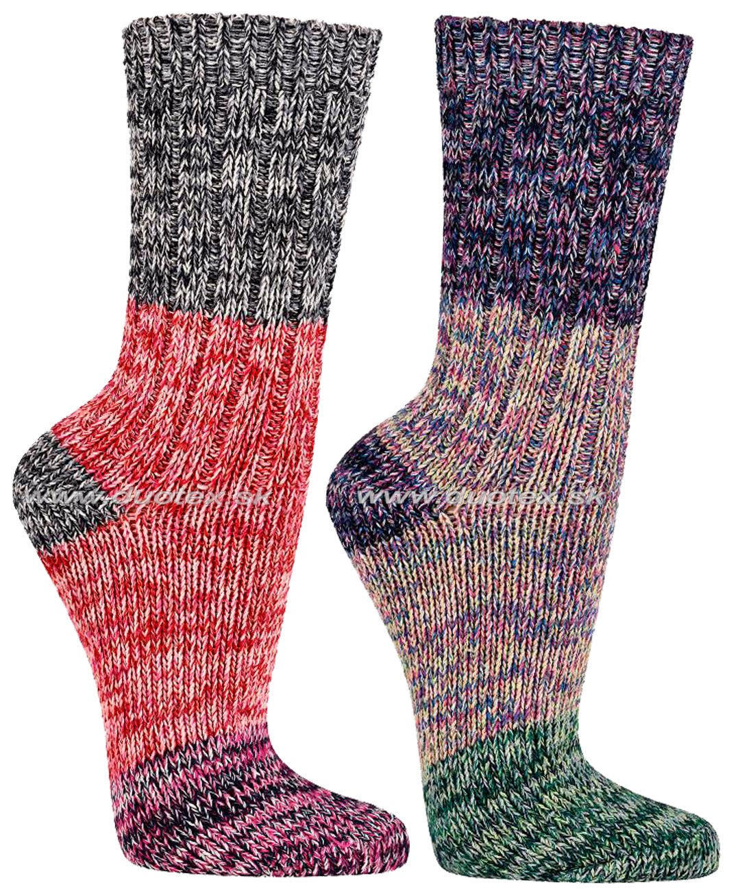 Dvojpack sa skladá z dvoch párov rôznych farieb - viď. obrázok. Dva páry ponožiek vo zväzku sú spojené jednou etiketou.