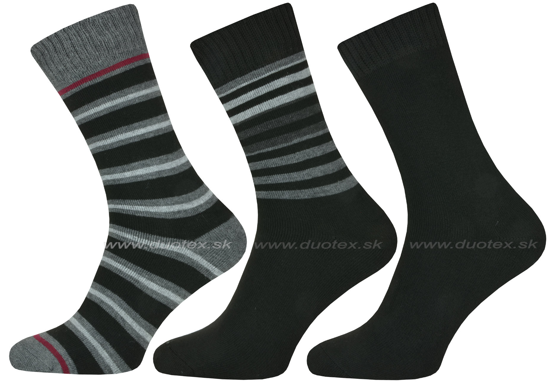 pánske teplé, mäkké ponožky, froté zvnútra. Predávajú sa ako trojpack, ktorý sa skladá z 3 párov ponožiek rôznych farebých kombinácií spojených jednou etiketou - viď obrázok.