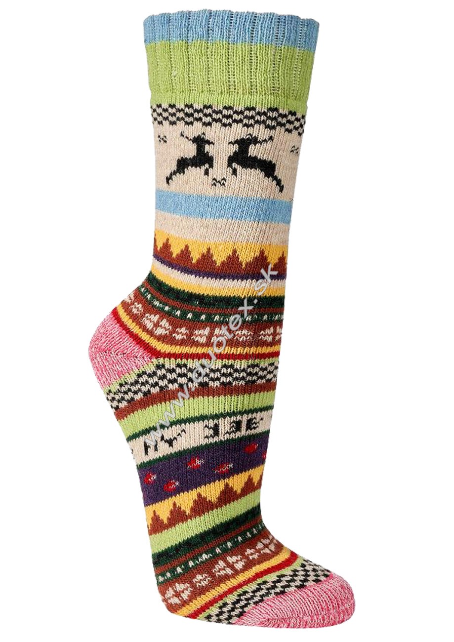 dámske teplé tradičné zimné ponožky s obľúbeným severským - nórskym vzorom. Ponožky sú vyhotovené s vysokým podielom hrejivej vlny a s froté vrstvou vo vnútri ponožky. Dvojpack sa skladá z dvoch párov rôznych farieb - viď. obrázok.