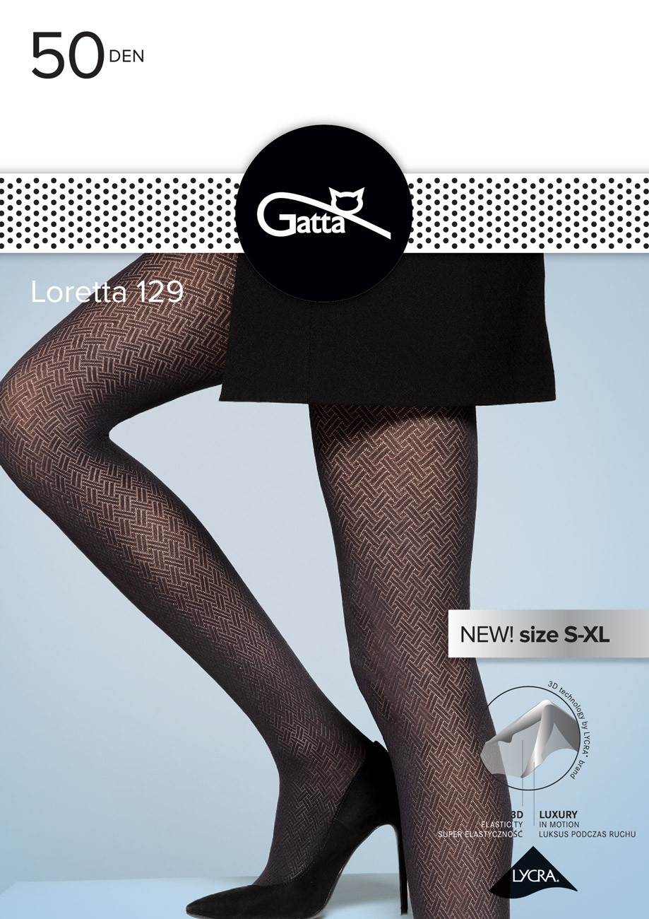 Dámske vzorované pančuchové nohavice bez zosilneného sedu s malým klinom v rozkroku, 50den